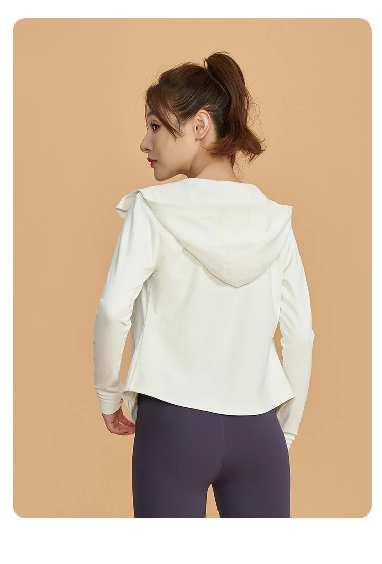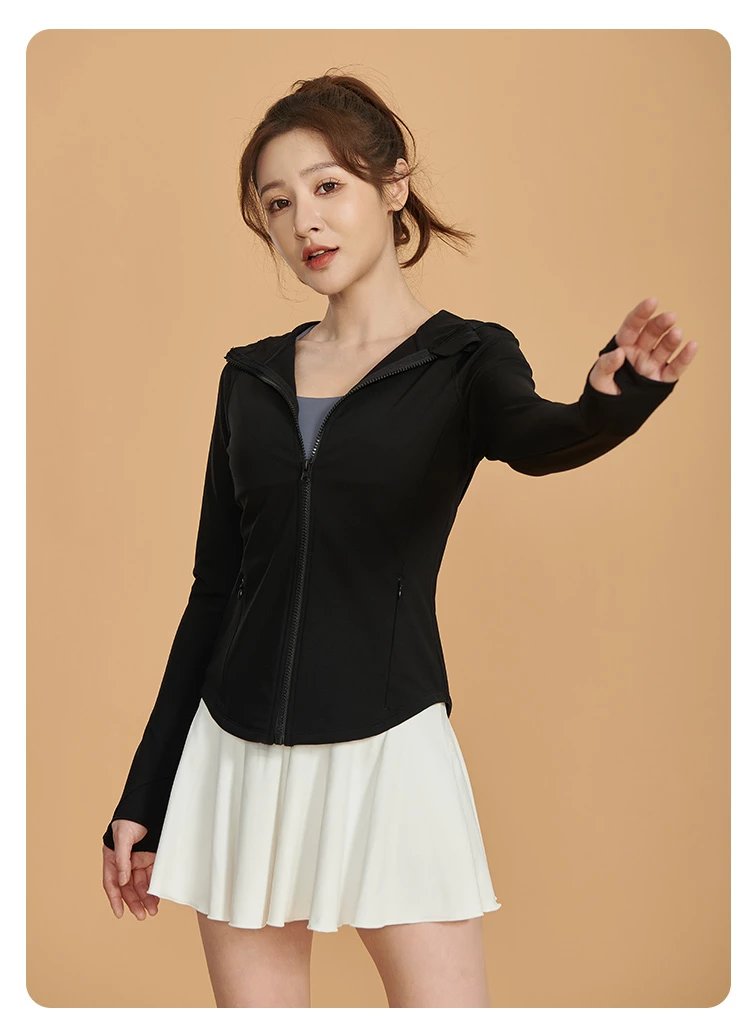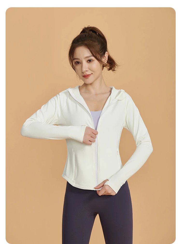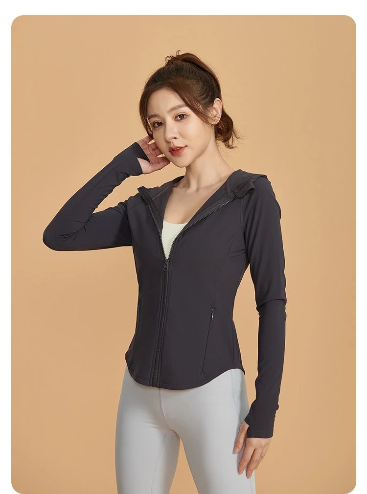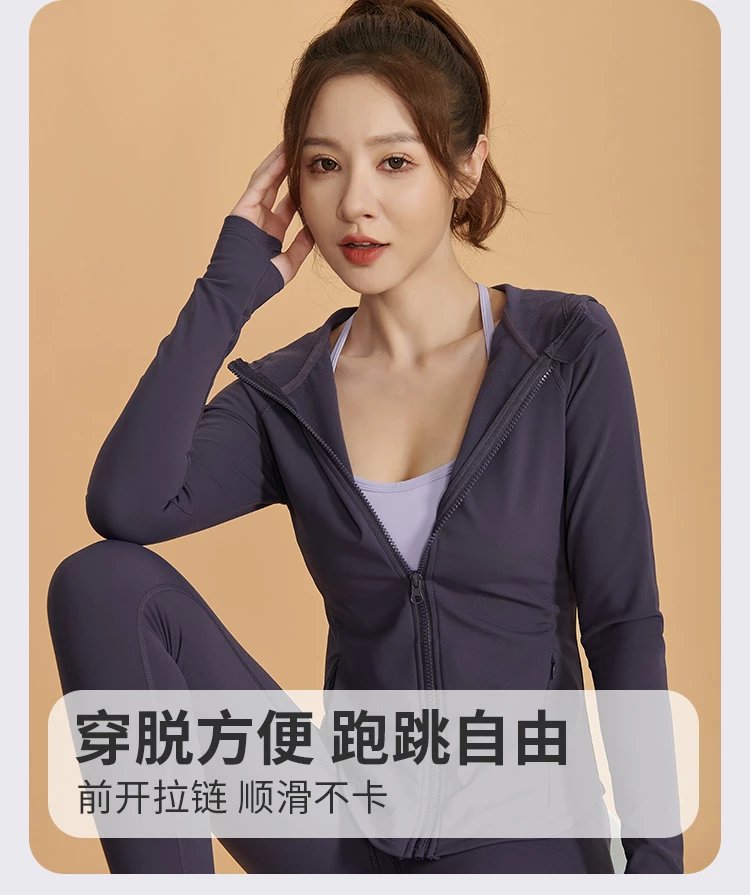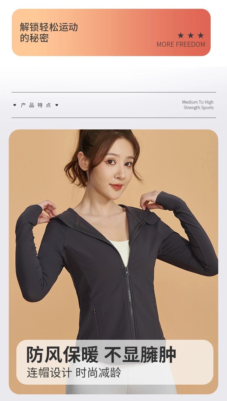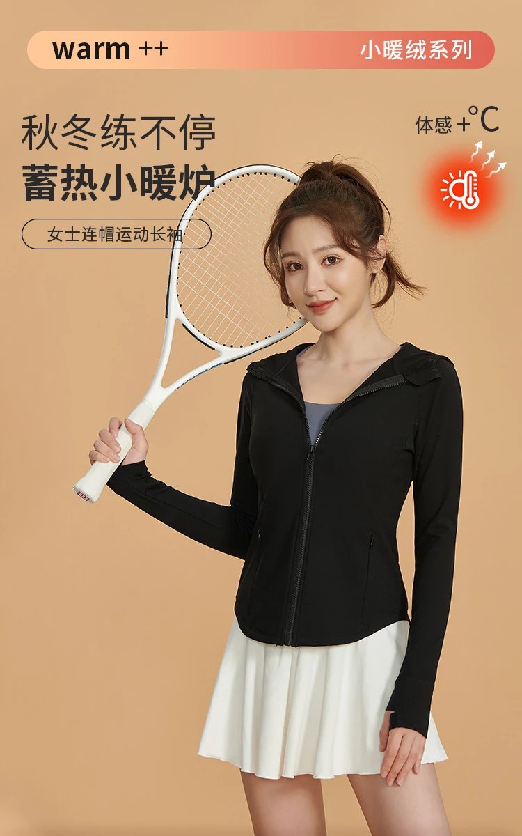 爱帝女式暖绒连帽外套,2023秋冬新款暖绒休闲连帽长袖开衫百搭保暖修身显瘦瑜伽服外套2237127311