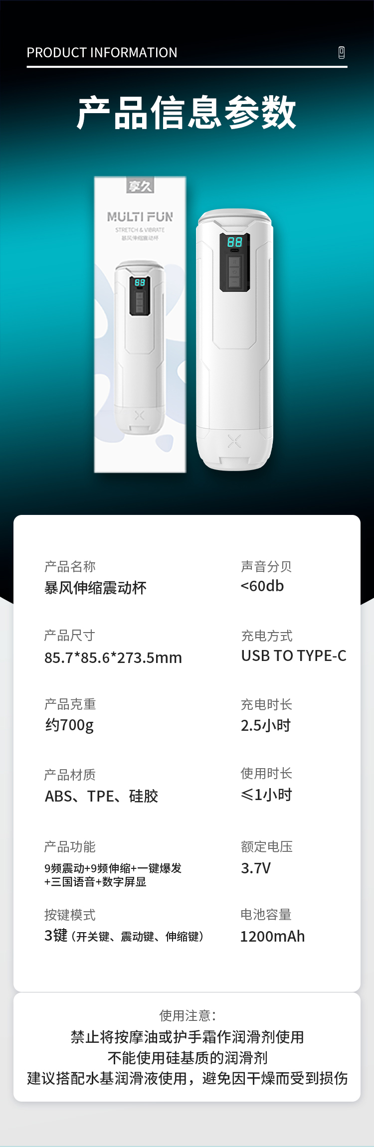 享久暴风伸缩震动杯一键爆发真人发声成人情趣用品全自动飞机杯男用电动自慰器