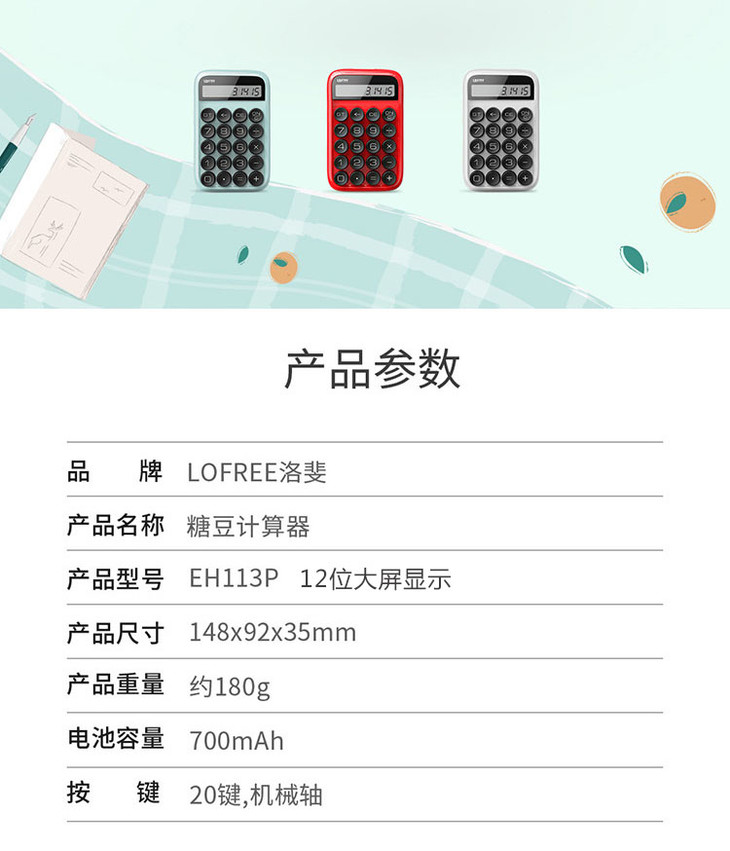 小米有品洛斐糖豆计算器女lofree圆点可爱便携计算机办公学生考试
