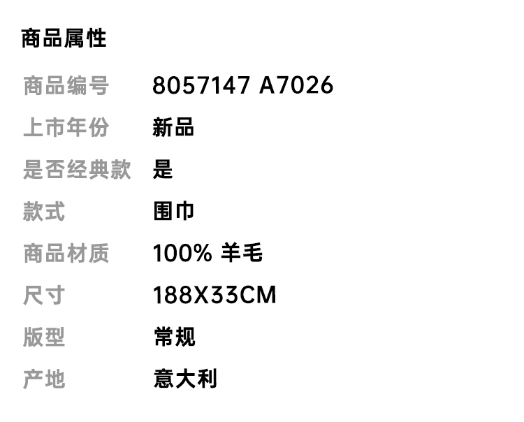【五】BURBERRY 巴宝莉 中性经典格纹羊绒围巾 格子 8076576 A7026