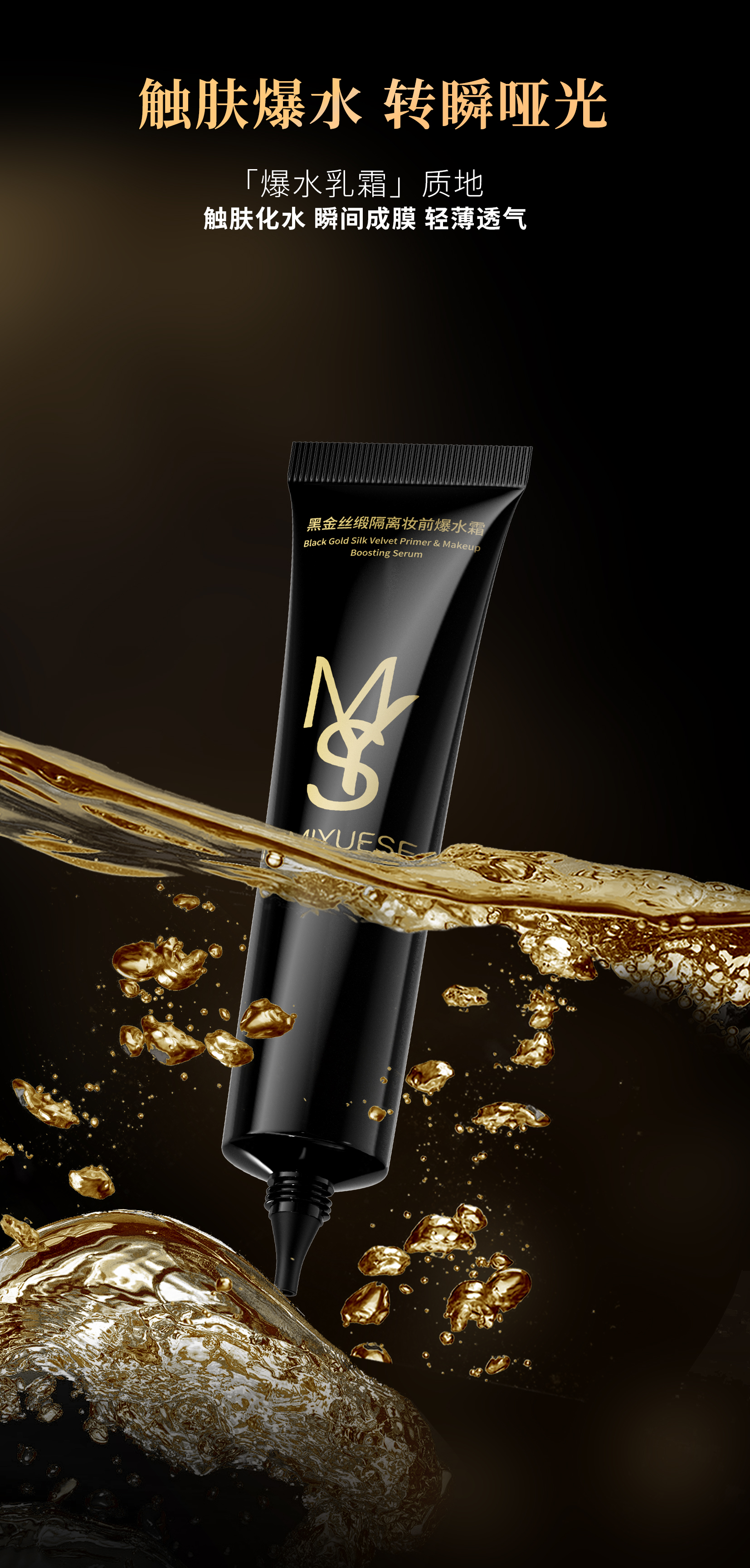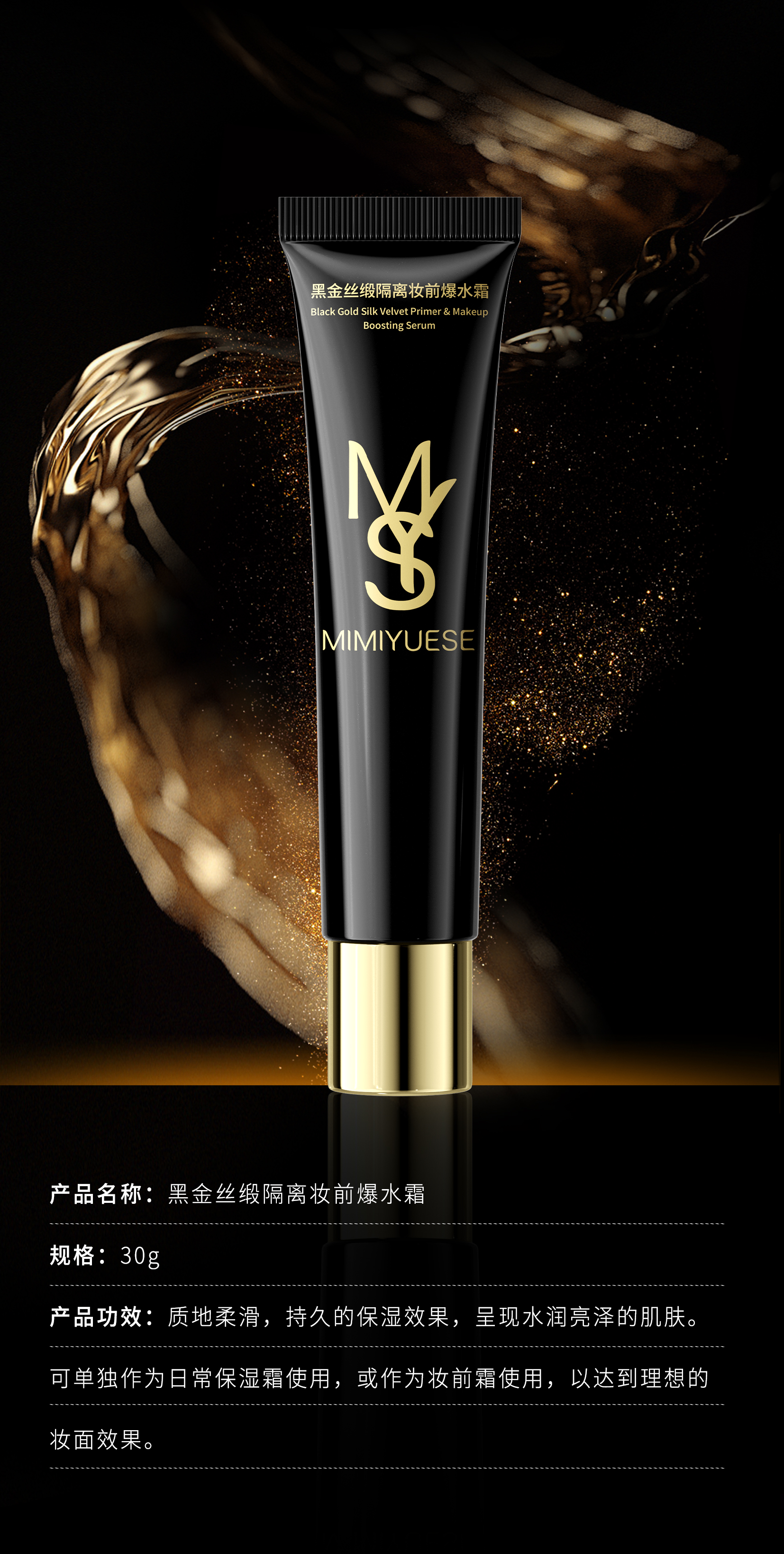 新品上市🎊秘密悦色 黑金丝缎隔离妆前爆水霜 30g