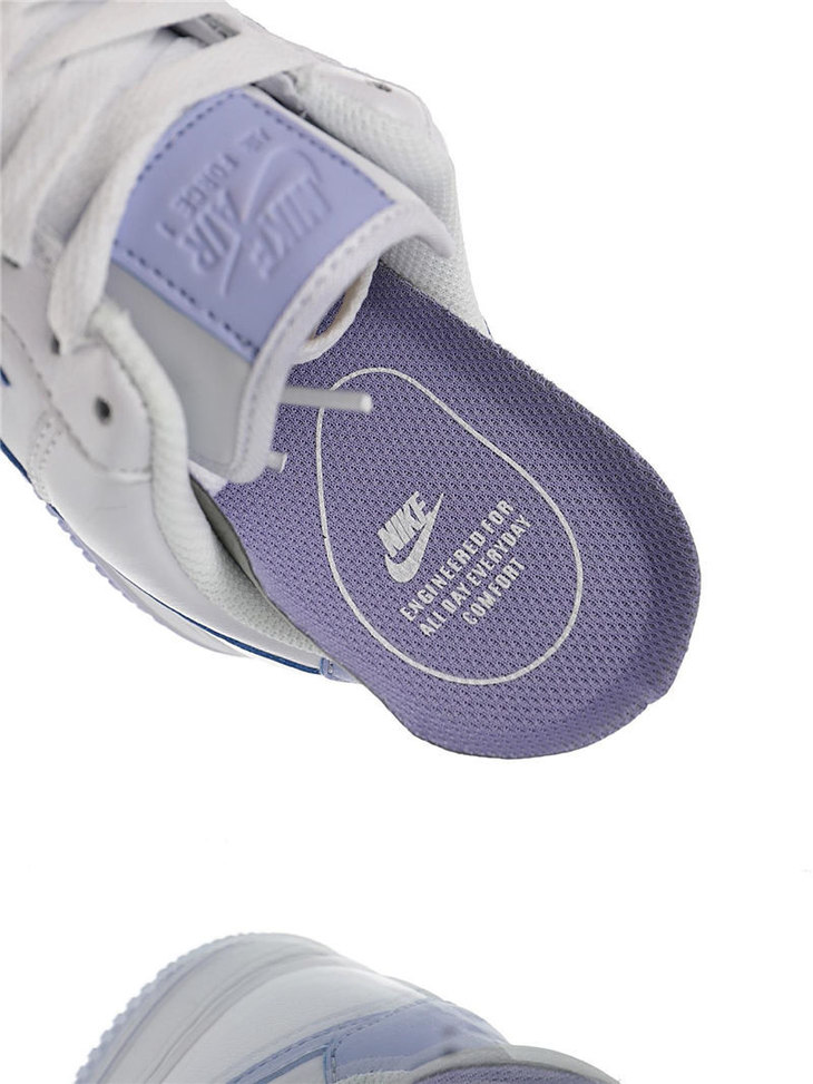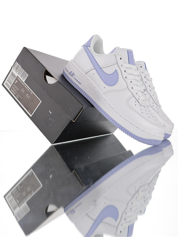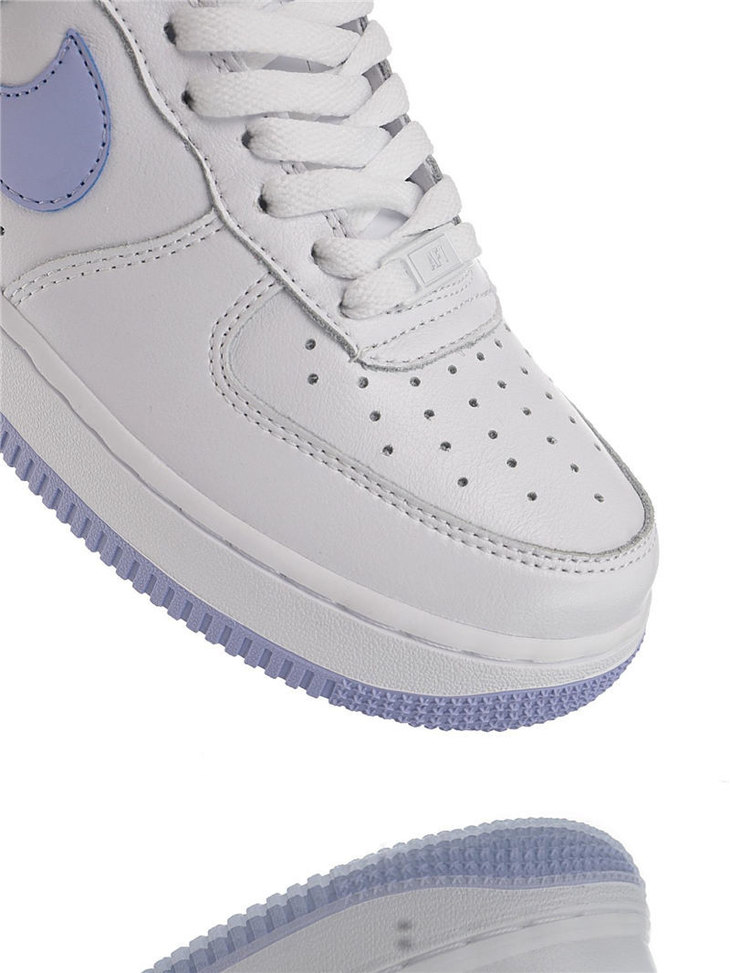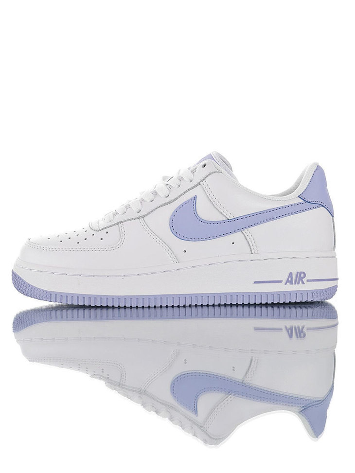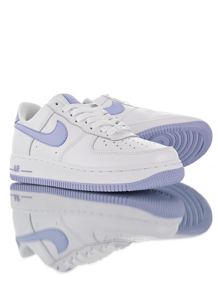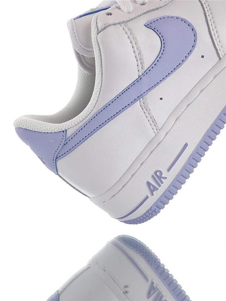 耐克Nike WMNS Air Force 1 '07 采用牛剖层移膜革 内置全掌air sole气垫 空军低帮经典百搭休闲运动板鞋 白浅紫兰配色