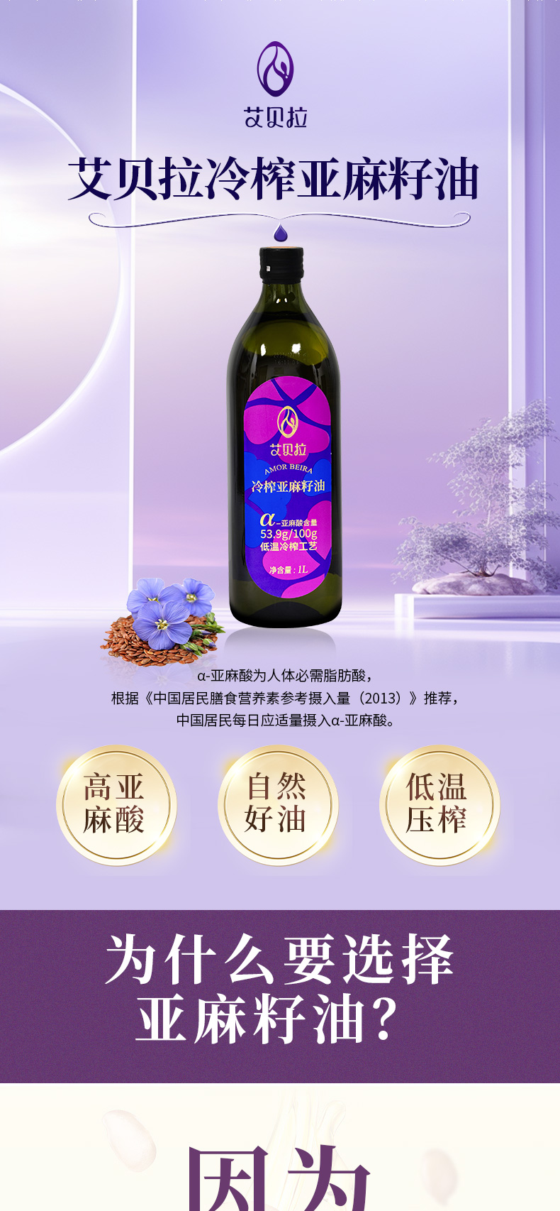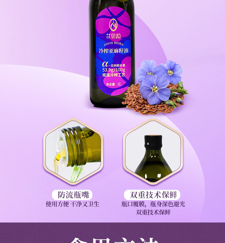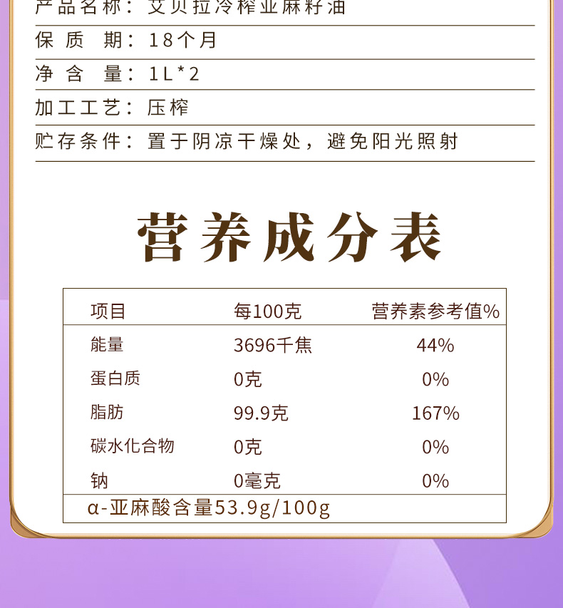 艾贝拉冷榨亚麻籽油礼盒 1L*2瓶【包邮直发】