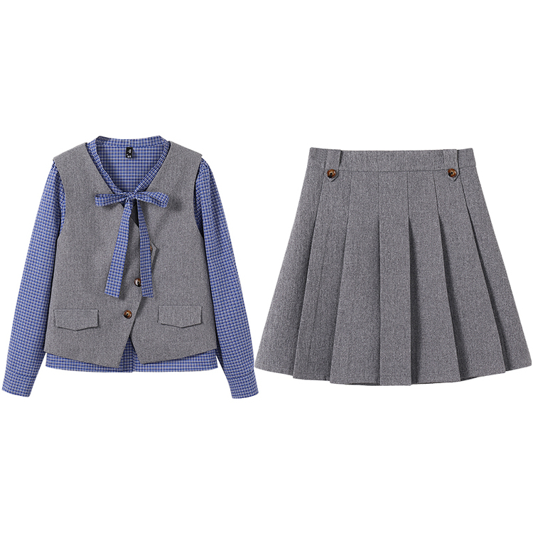 奢姿2025年春季新款大码女装韩系套装胖妹妹复古风马甲百褶三件套9951992813