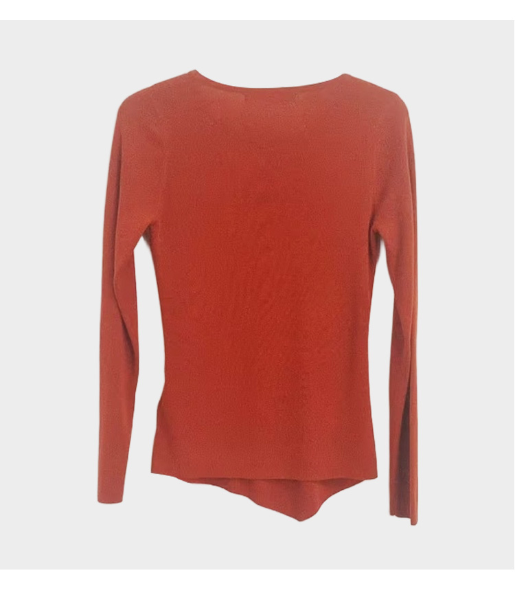VIVIAN LIU R2447317 25春新款V领木耳边下摆A字版型长袖针织上衣