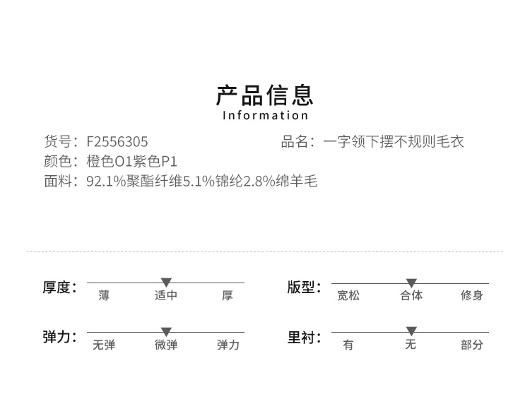VIVIAN LIU薇薇安刘F2556305秋季女装新款一字领下摆不规则毛衣