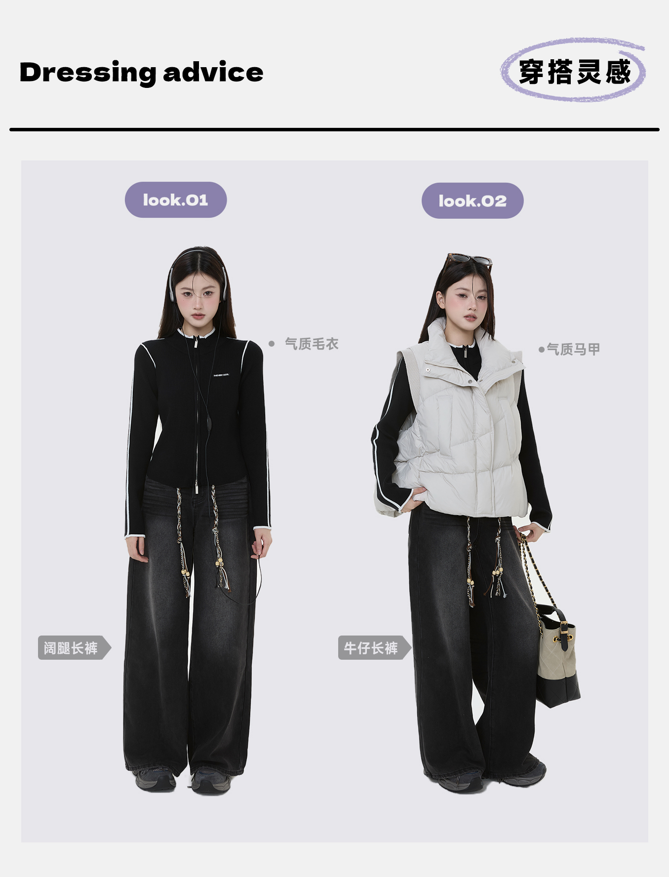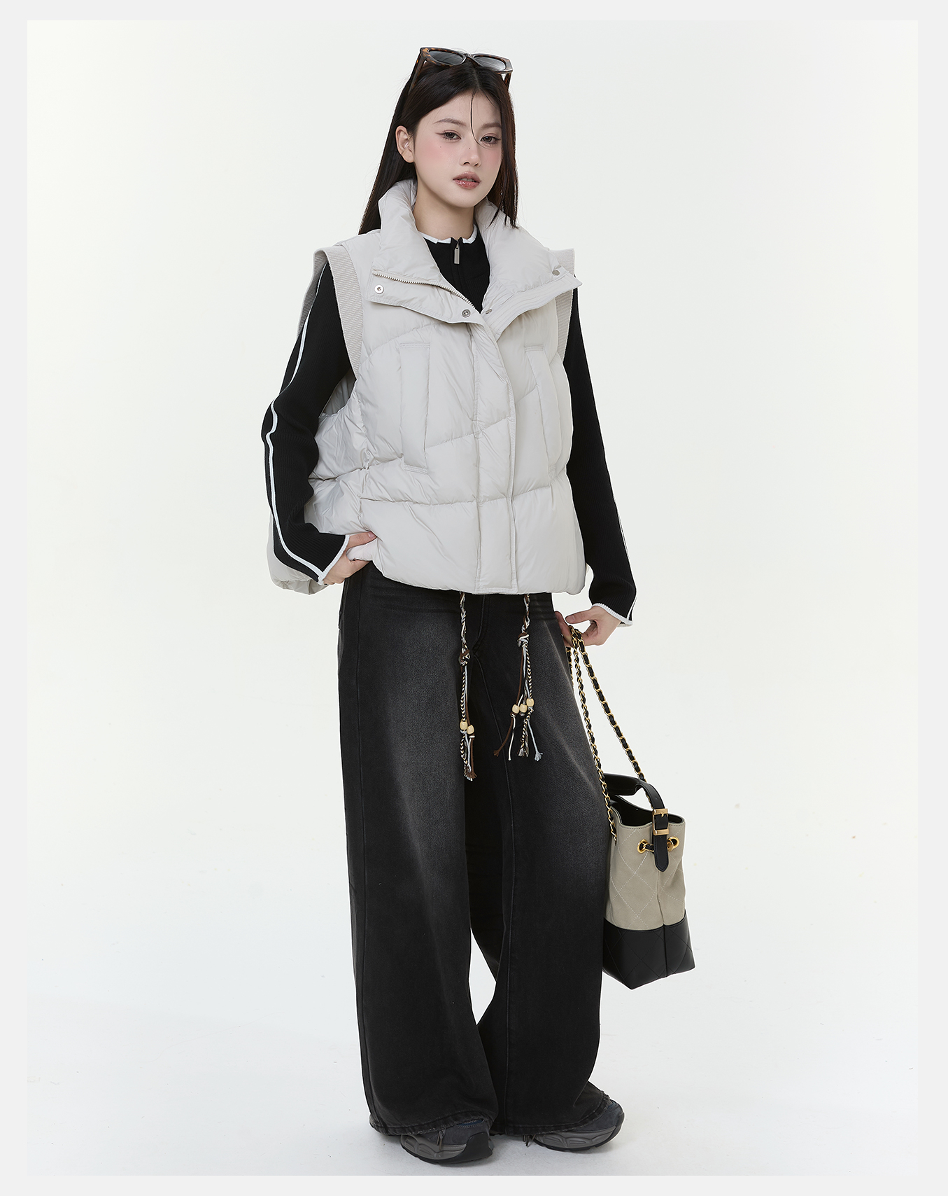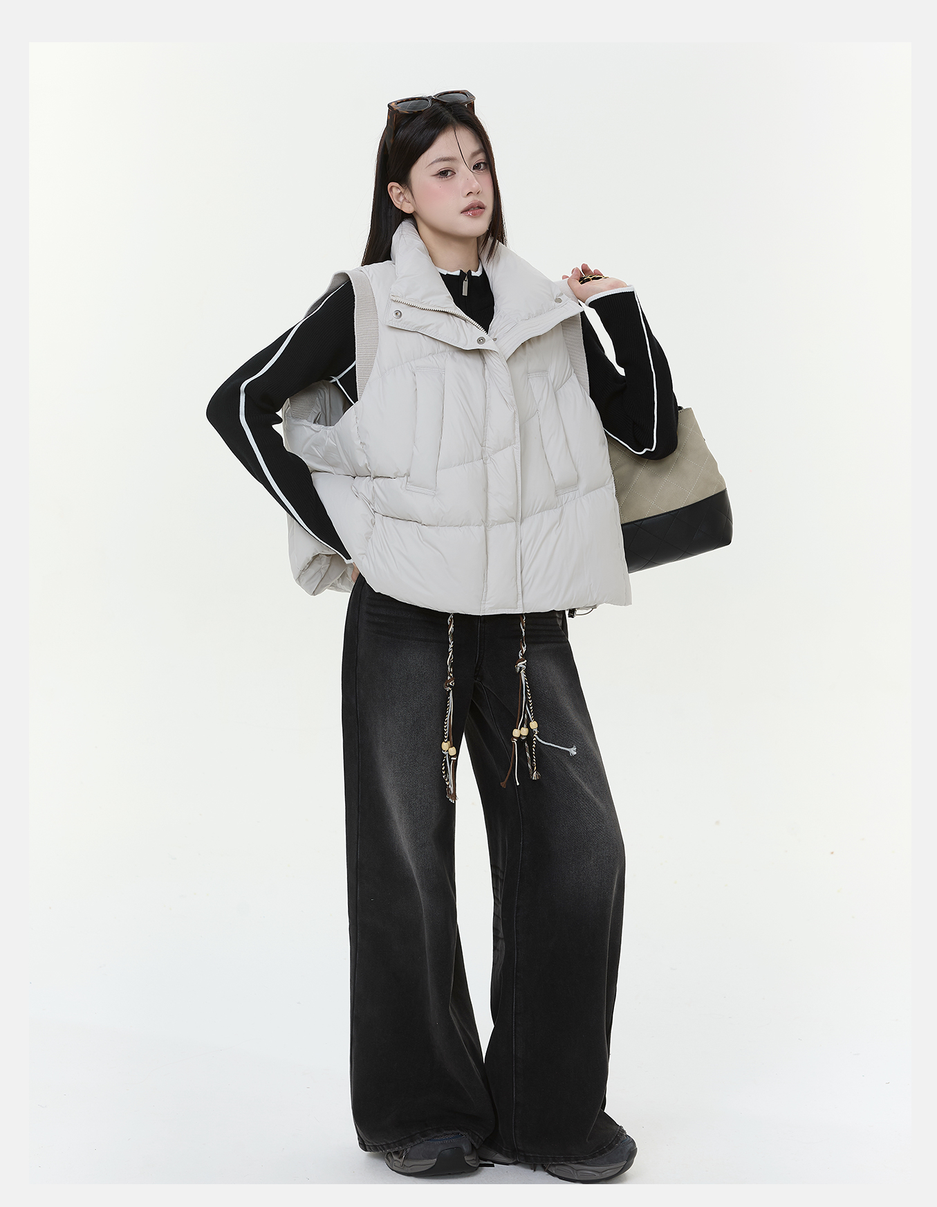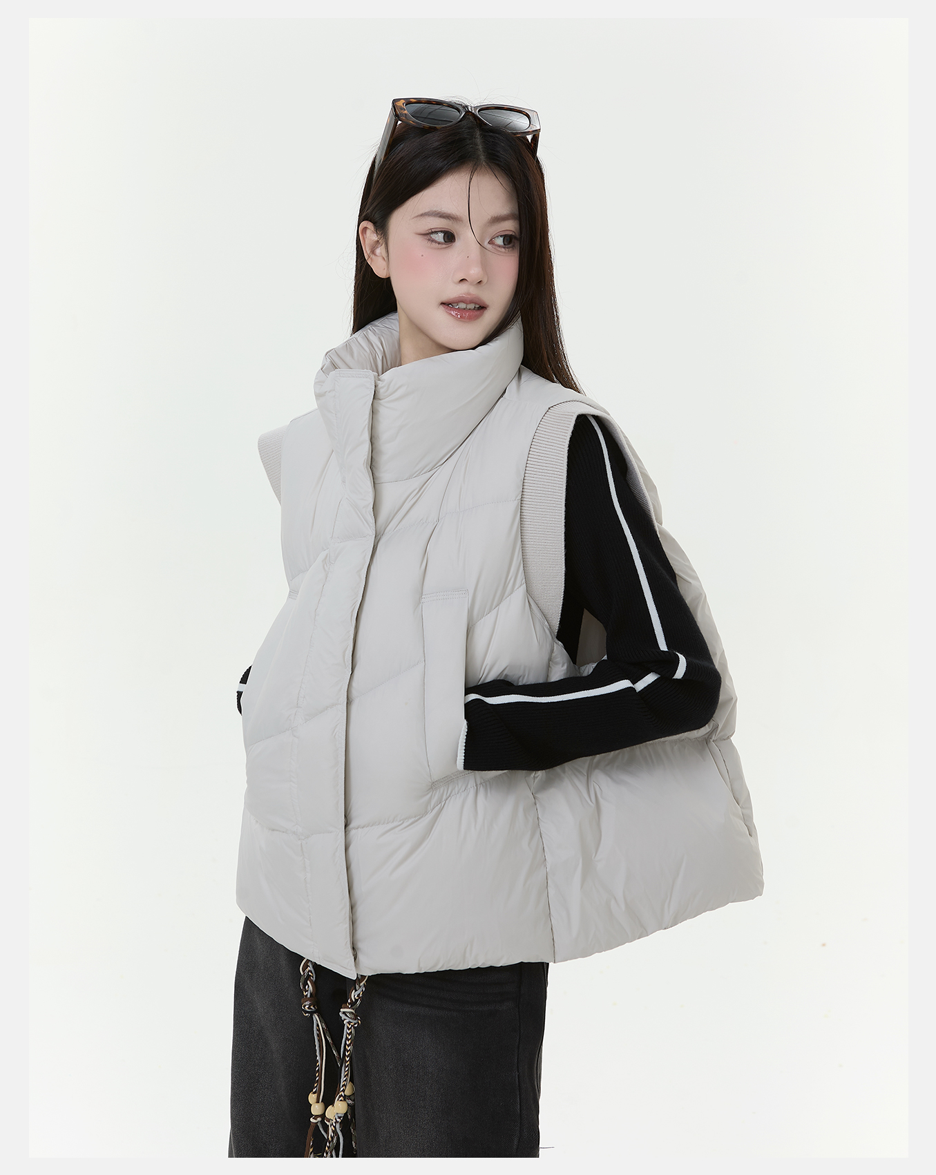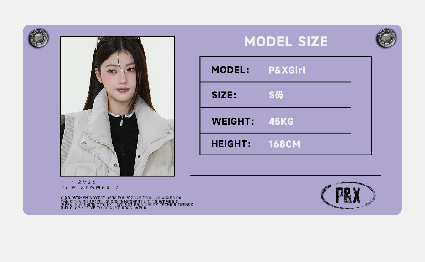 P&X设计师女装2025冬季拉链纯色无袖羽绒短款马甲 825406038 浅灰