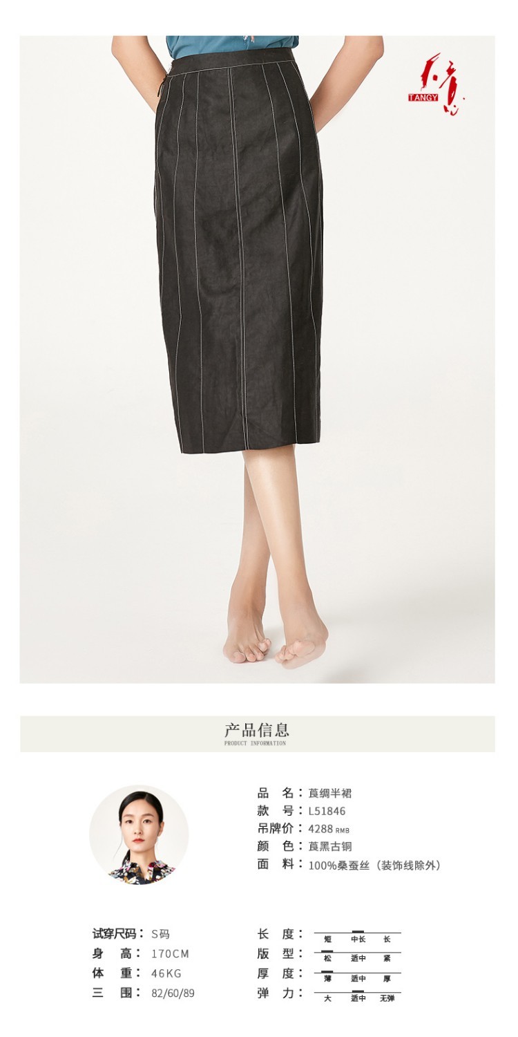 TANGY Collection/天意精品春夏款优雅气质修身百搭真丝莨绸半身裙