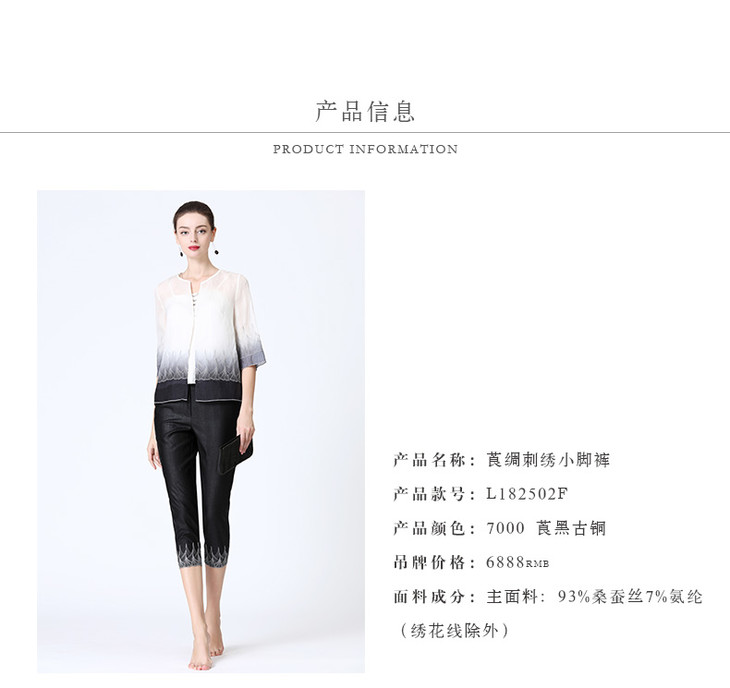 TANGY Collection天意莨绸刺绣小脚裤 商品图2