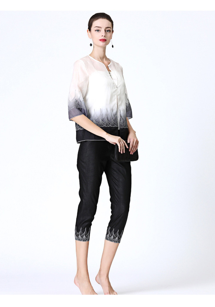 TANGY Collection天意莨绸刺绣小脚裤 商品图1