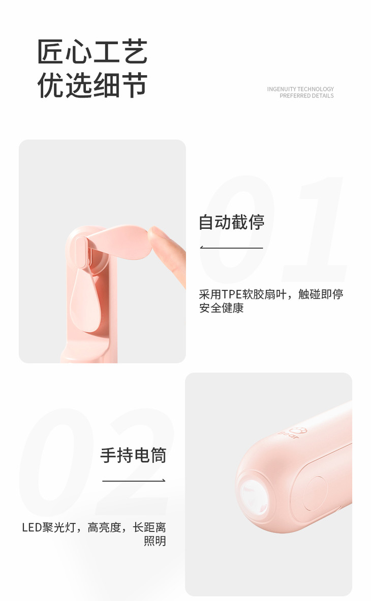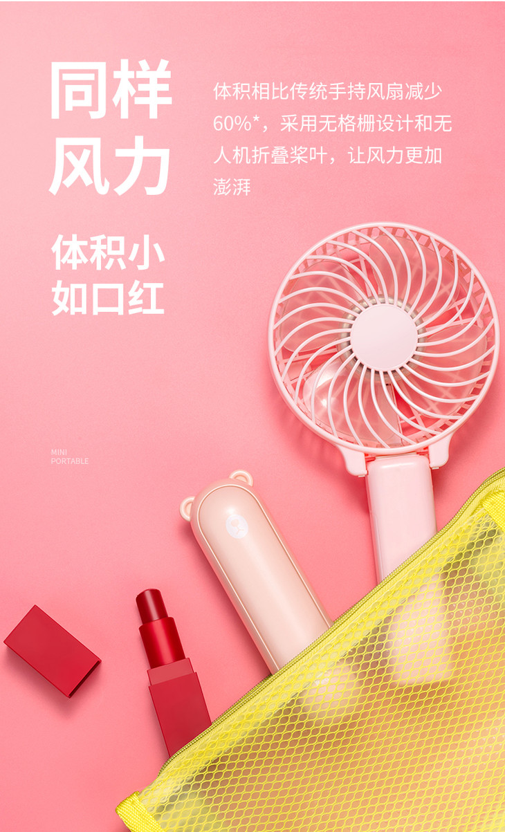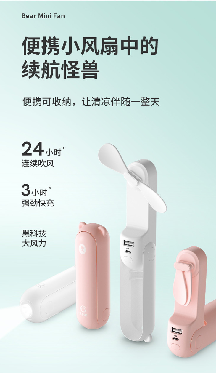 【风扇+移动电源+照明灯 】旅行折叠小风扇 有了我夏天走路带风 几素迷你可usb充电静音风扇便携式手持手拿电风扇