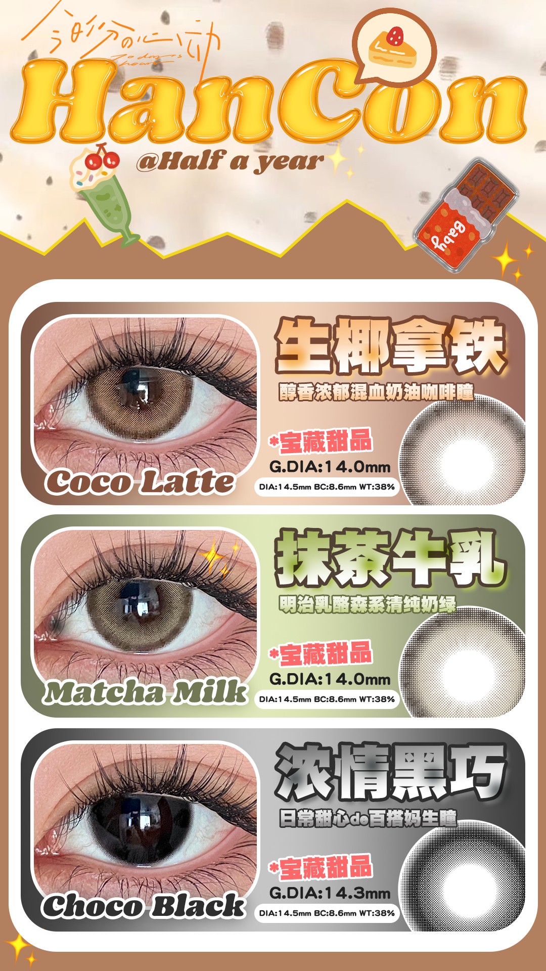 hancon半年抛  生椰拿铁/浓情黑巧 14.5mm 棕巧/绿/黑 商品图0