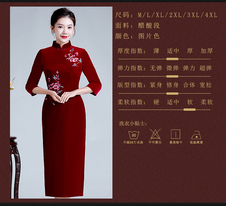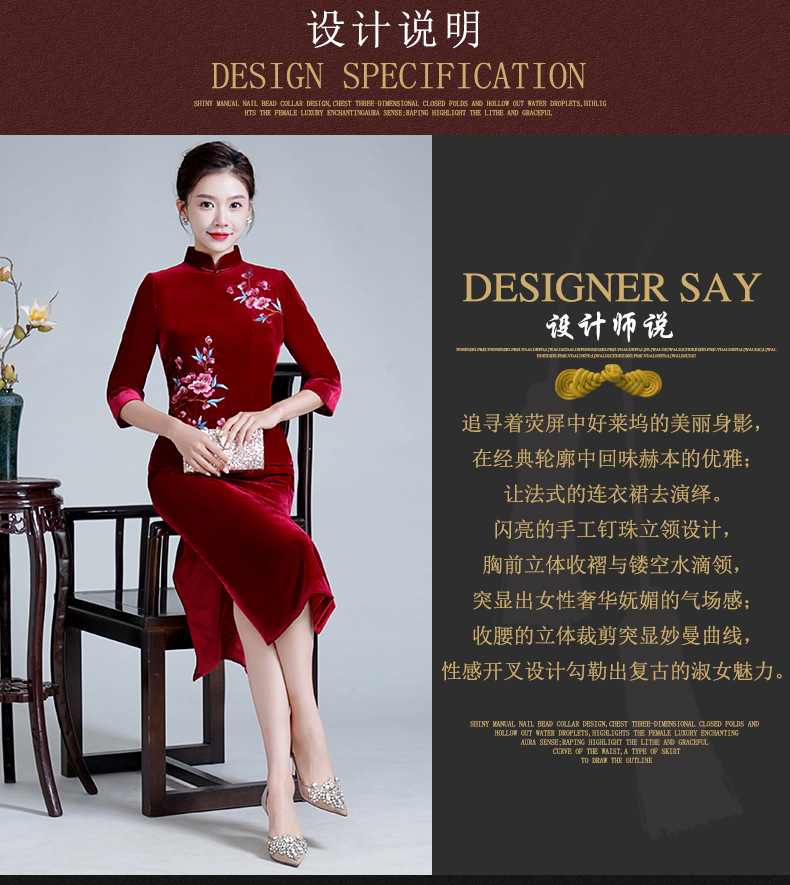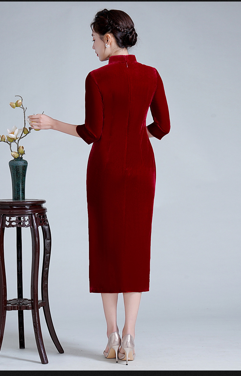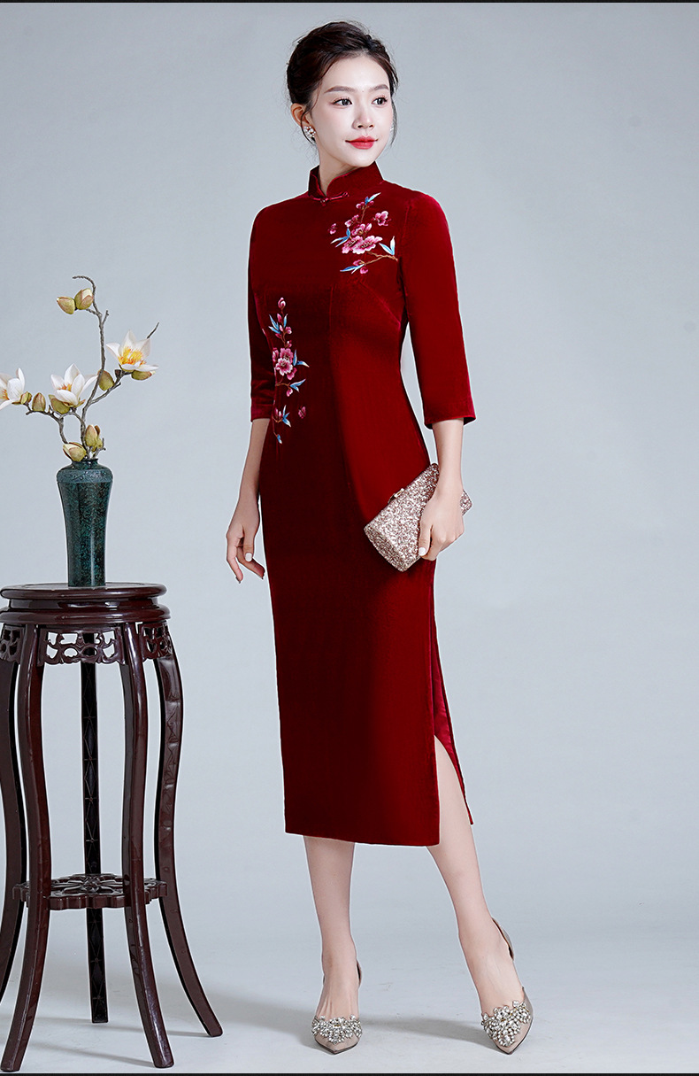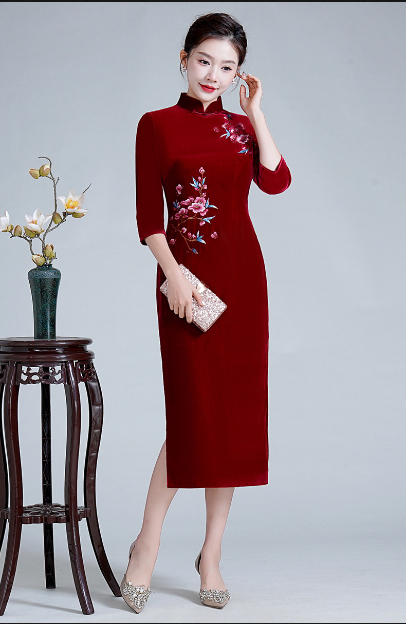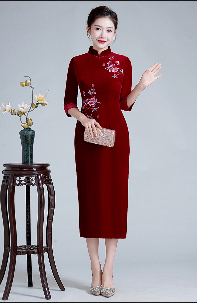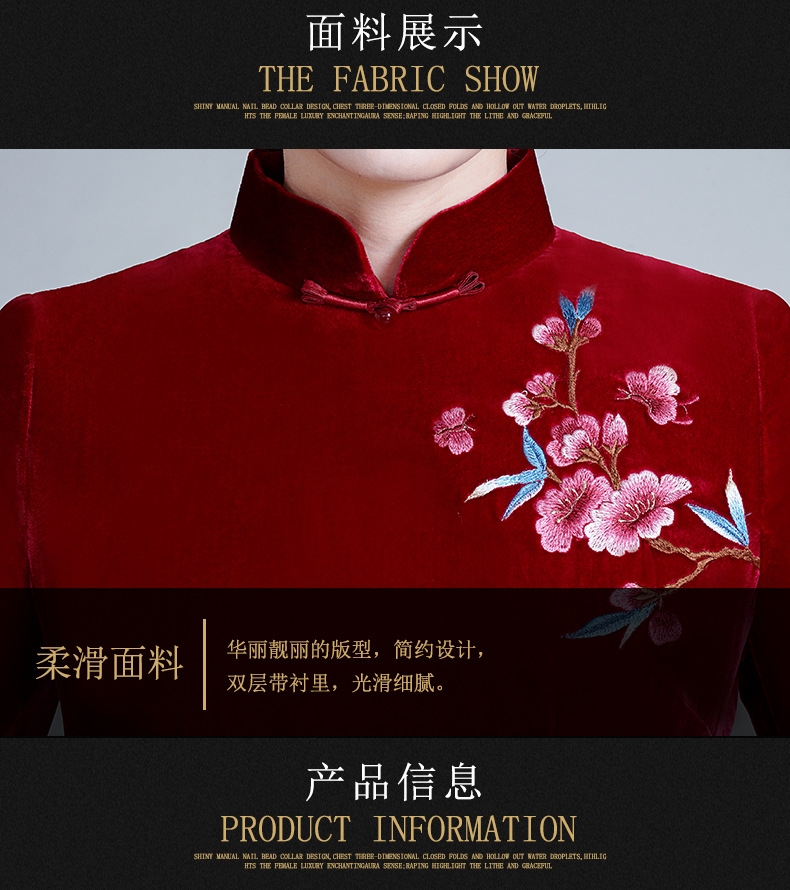新款喜婆婆婚宴装平时可穿结婚礼服高贵酒红色真丝绒绣花旗袍秋季LHS-A36