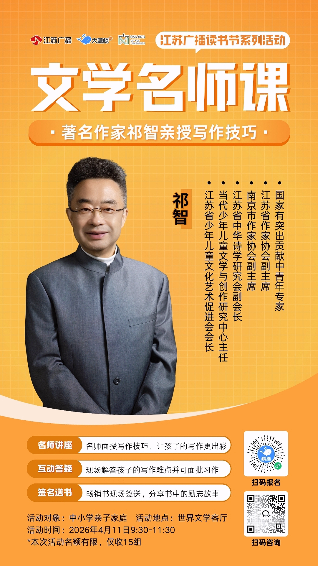 文学名师课——著名作家祁智亲授写作技巧,破解写作难题(江苏广播读书节系列活动)