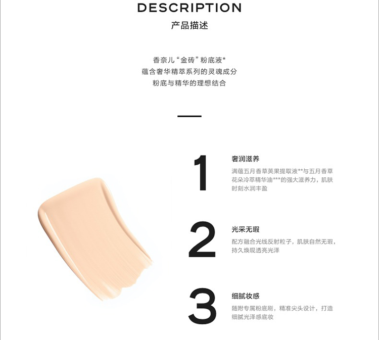 【送粉底刷】CHANEL/香奈儿 奢华精萃滋养金砖粉底液40ML#BD01 适合暖白皮