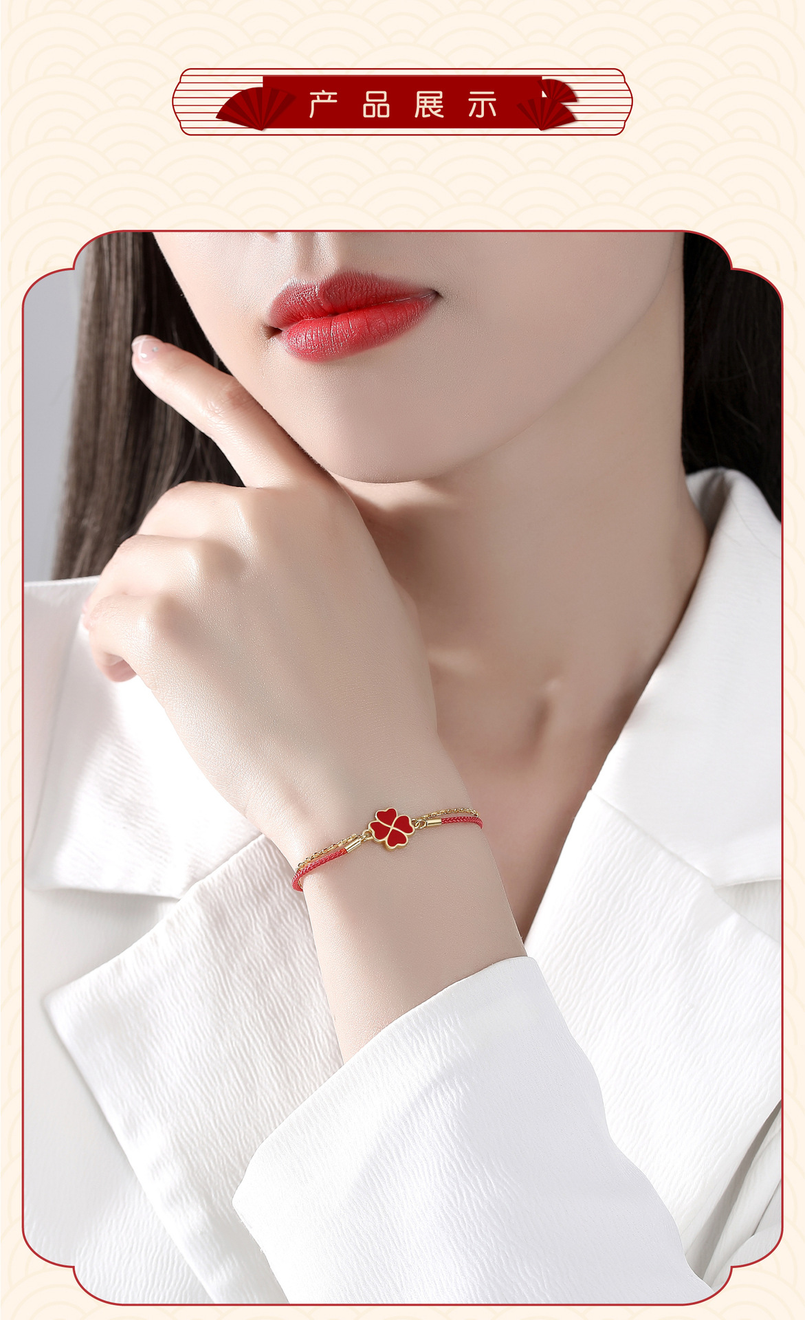 【授权商品】BOMURNNY/宝慕尼幸运草红手绳手链