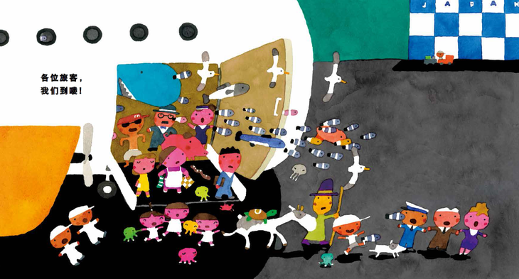 海里的生物也陆续搭上影子飞机,不一会儿,整架飞机就客满了。满满地载着乘客的影子飞机,跟着天空中的飞机降落在跑道上。机舱门一开,所有的乘客,包括人、动物以及海底生物,却意外地从真正的飞机里走下来,让停机坪的工作人员大吃一惊!