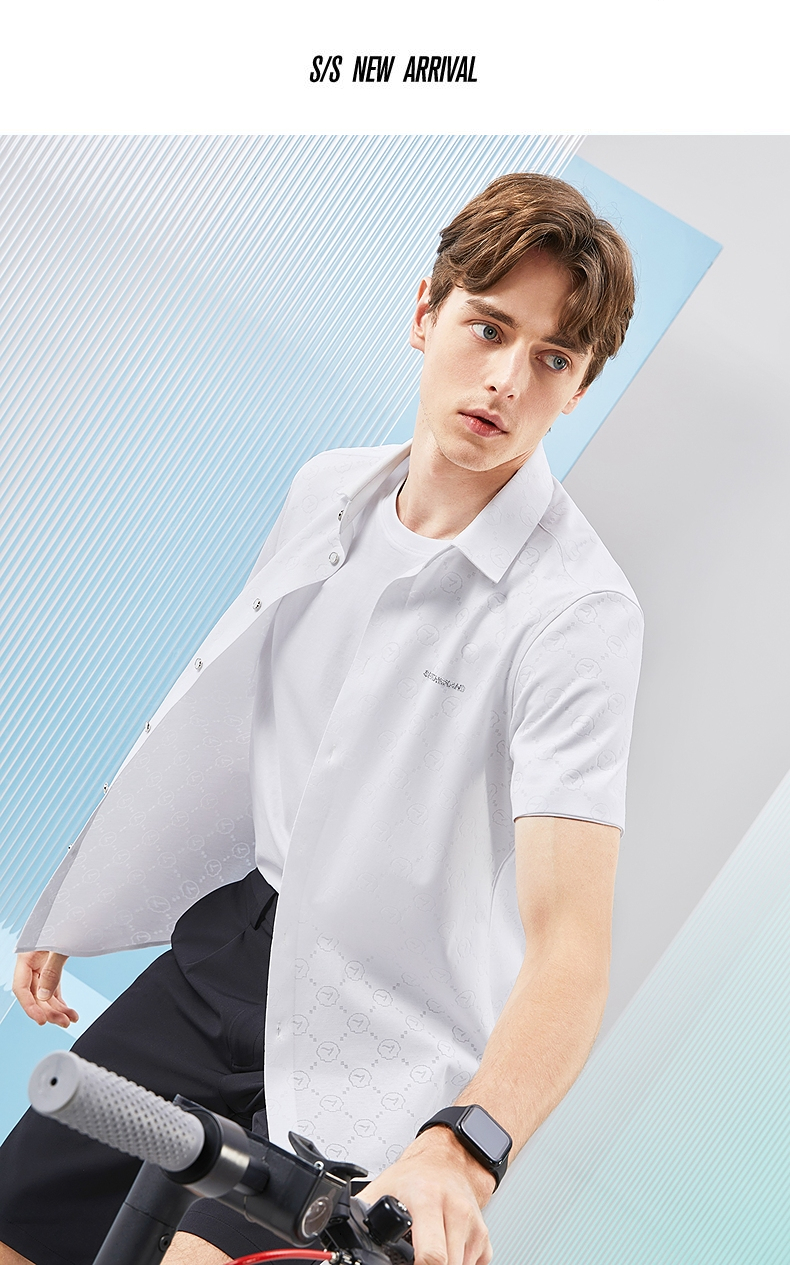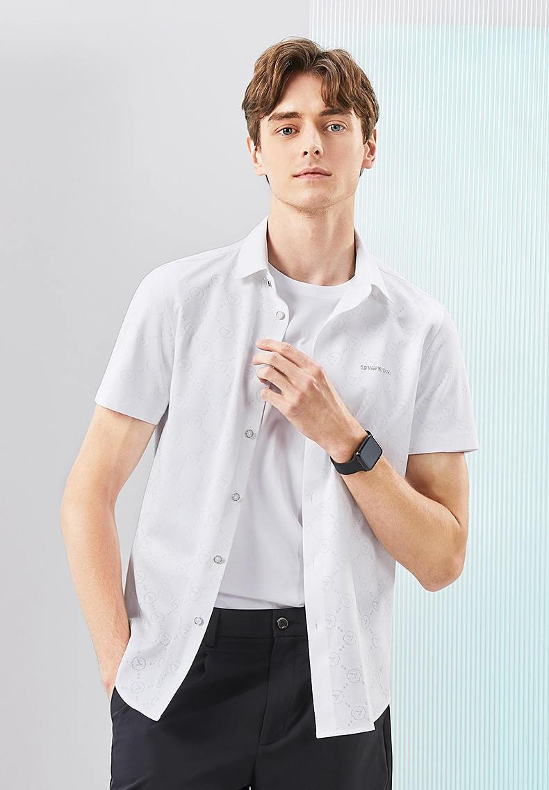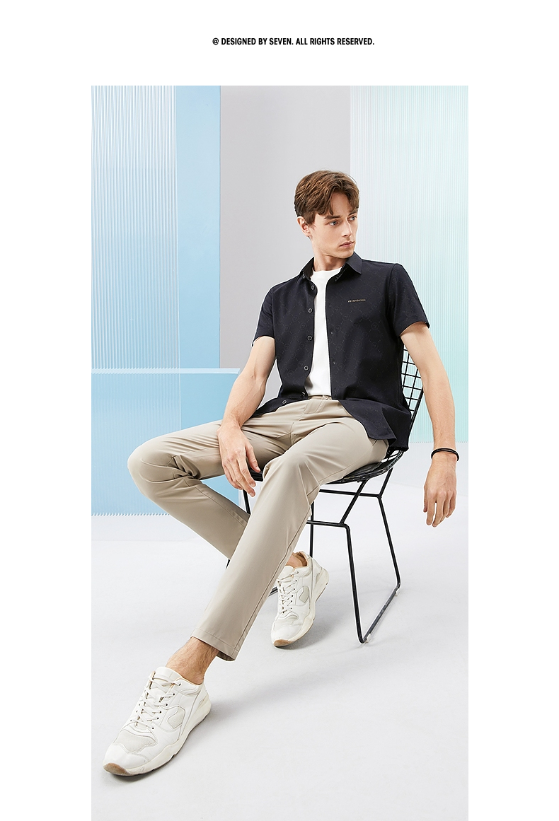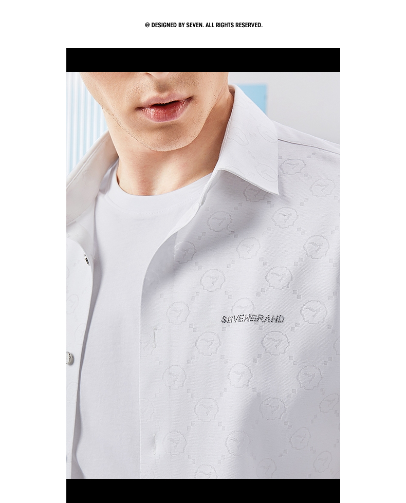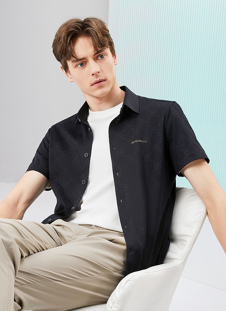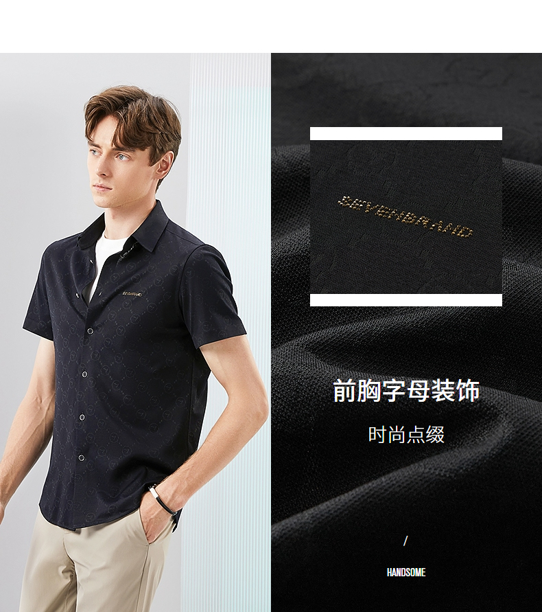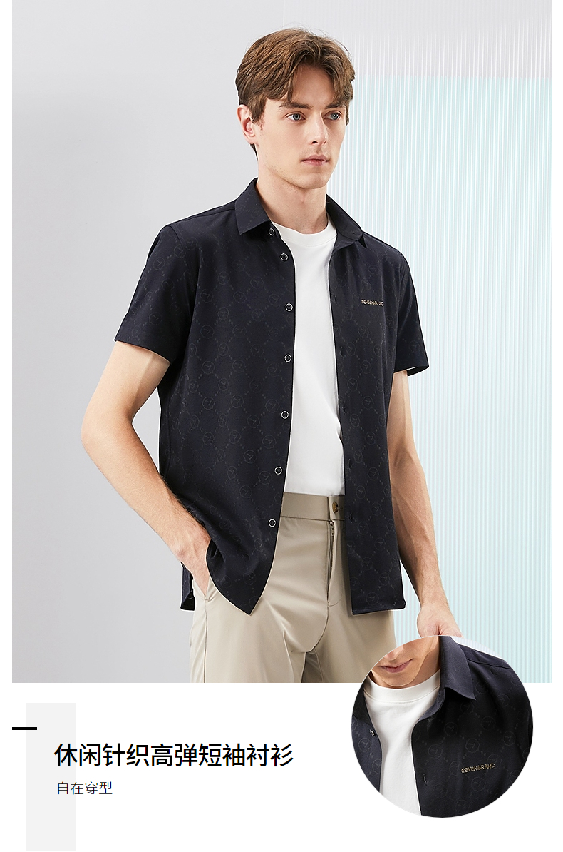 【高弹针织】柒牌男装短袖衬衫男夏季新品时尚休闲中青年提花衬衣 126A71490