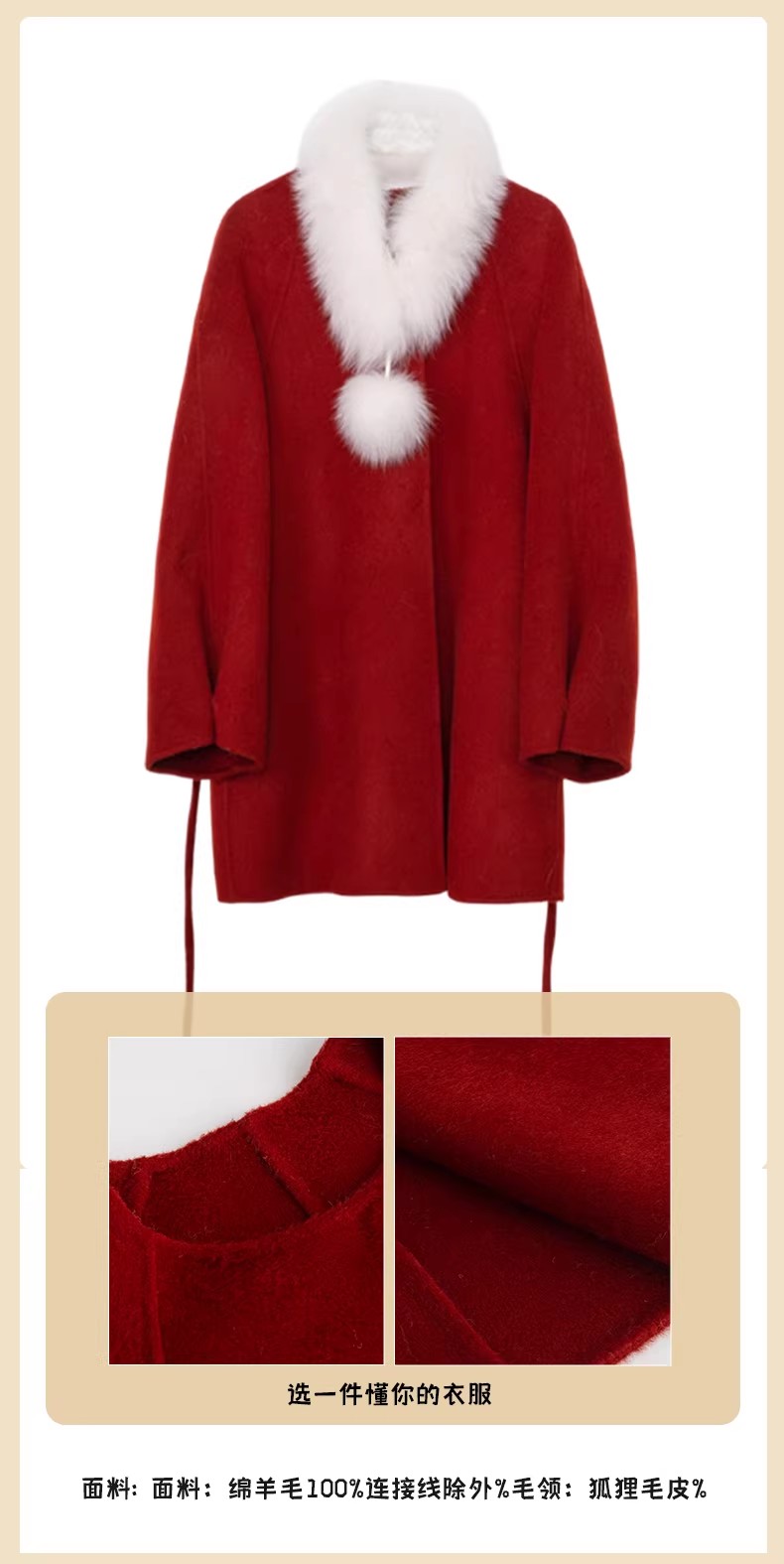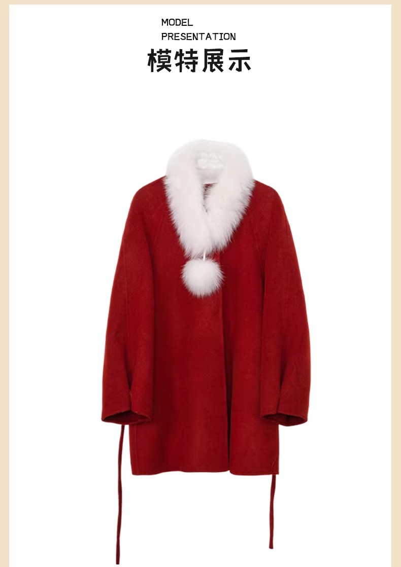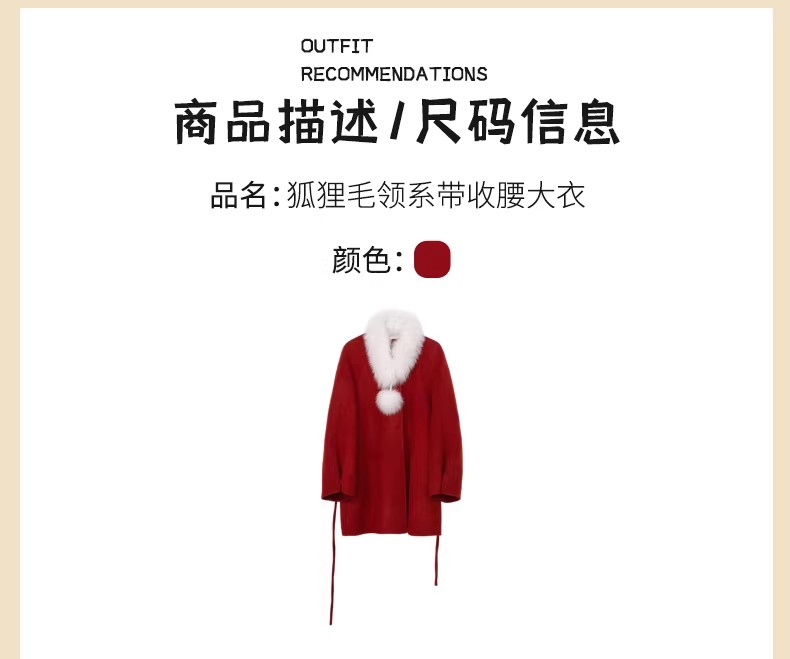 【门店同款】ENJOY冬季“午马”狐狸毛领系带收腰大衣 169443501