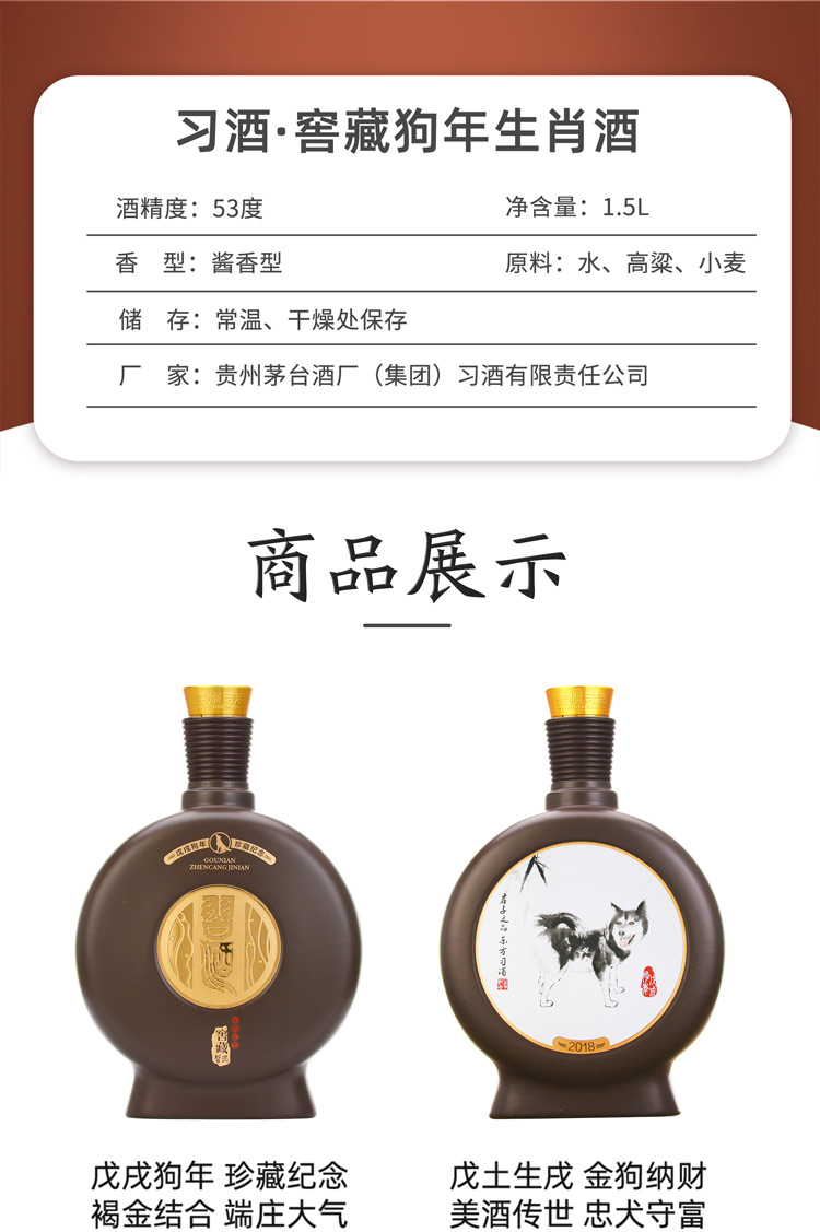 53度贵州习酒-窖藏戊戌(狗年)1.5L 单瓶