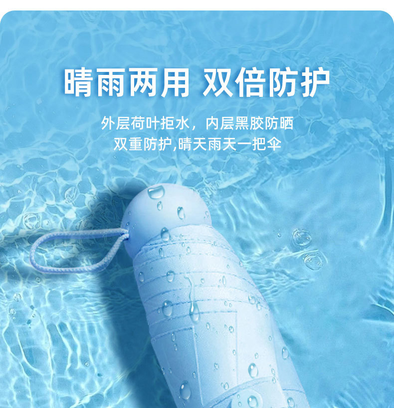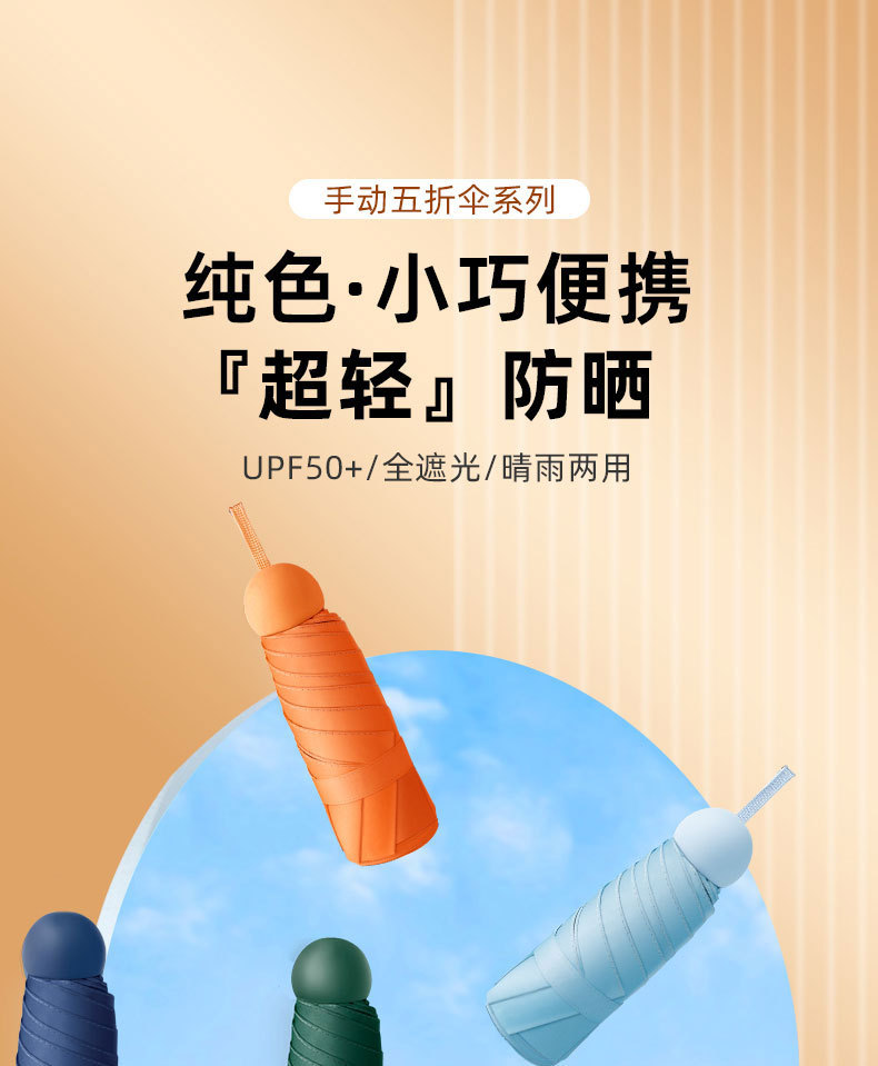【糖果系7色可选】mini便携黑胶晴雨两用防晒伞 五折六骨 加厚伞布