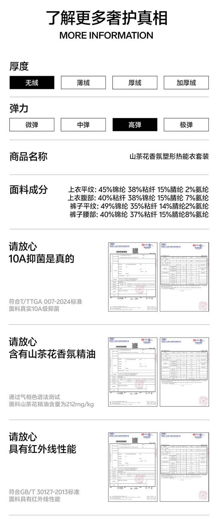 无缝一体编织,舒适贴肤 还专门采用创新纺纱工艺 做了消除静电处理 穿脱无惧噼里啪啦
