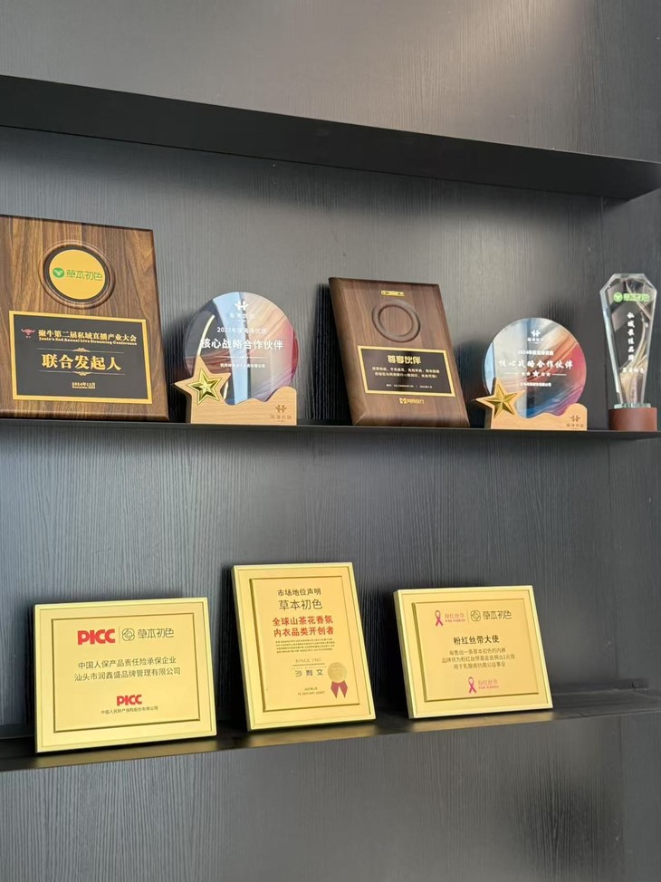 草本初色也是我们常团的牌子了 作为全球山茶花香氛内衣开创者 草本初色的实力真心不差 拿过内衣品类销量第一 手握多项业内认可的荣誉奖项 线下还入驻了万达商场