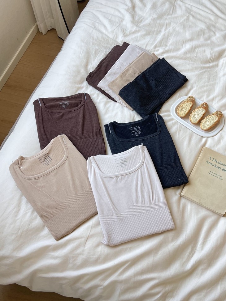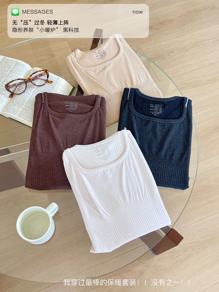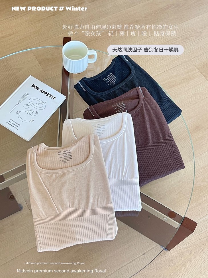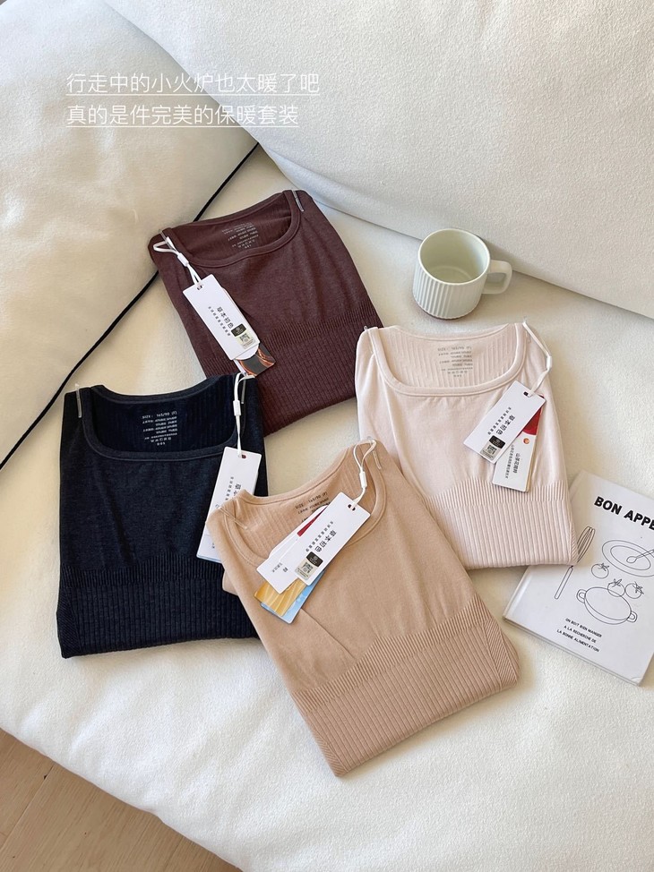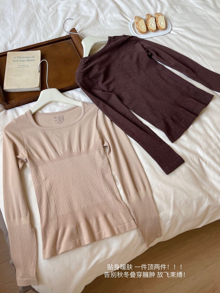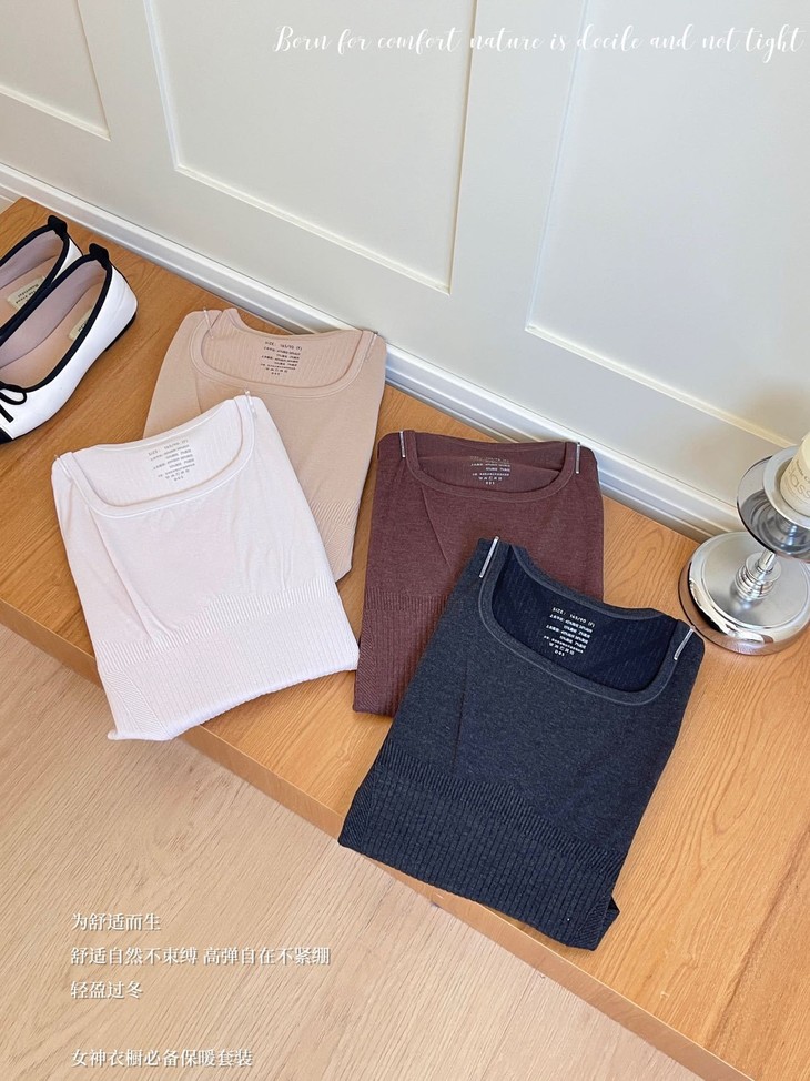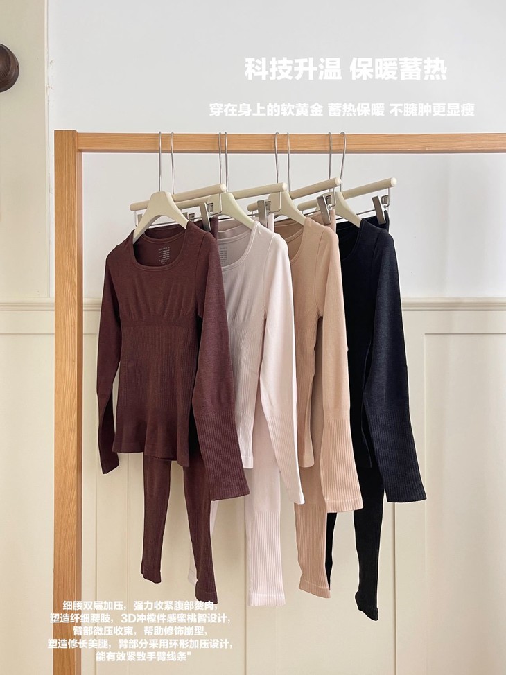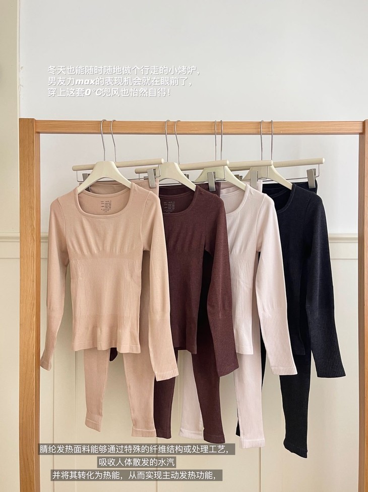 每年冬天这种发热保暖套装 都卖得超爆💥高弹显瘦绝绝子 今年纱线做了黑科技升级版🕢 更亲肤柔软 颜色都是独家纱线定染 上身即暖☀️