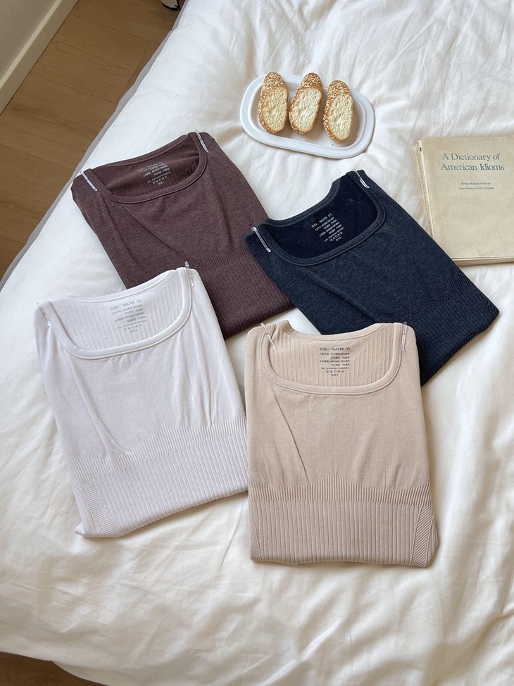 要搭衣服也省心 上衣隐形方圆U领设计 完全不挑外搭 各种圆领、V领的毛衣卫衣 随便穿也不会露出尴尬的领边