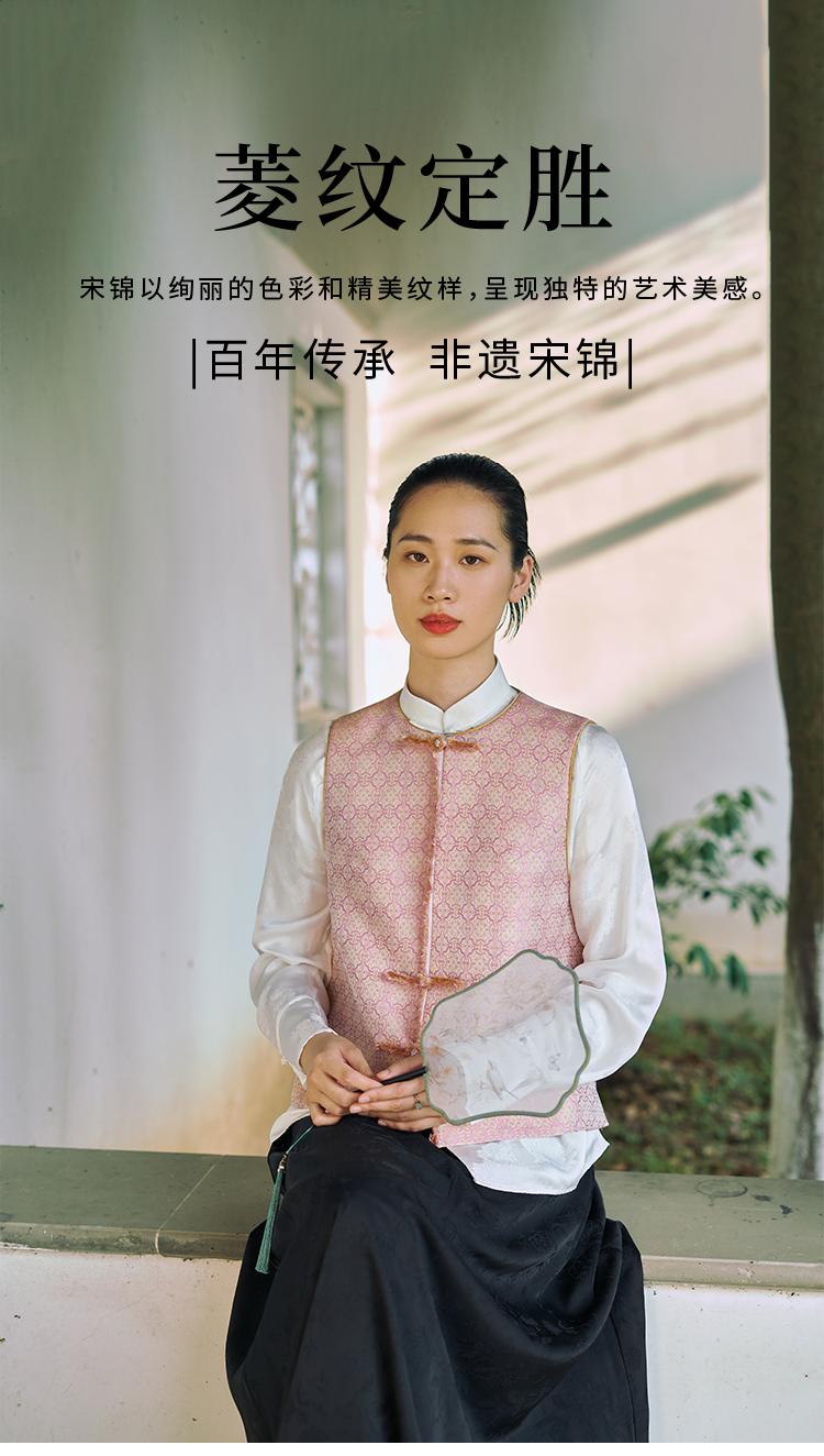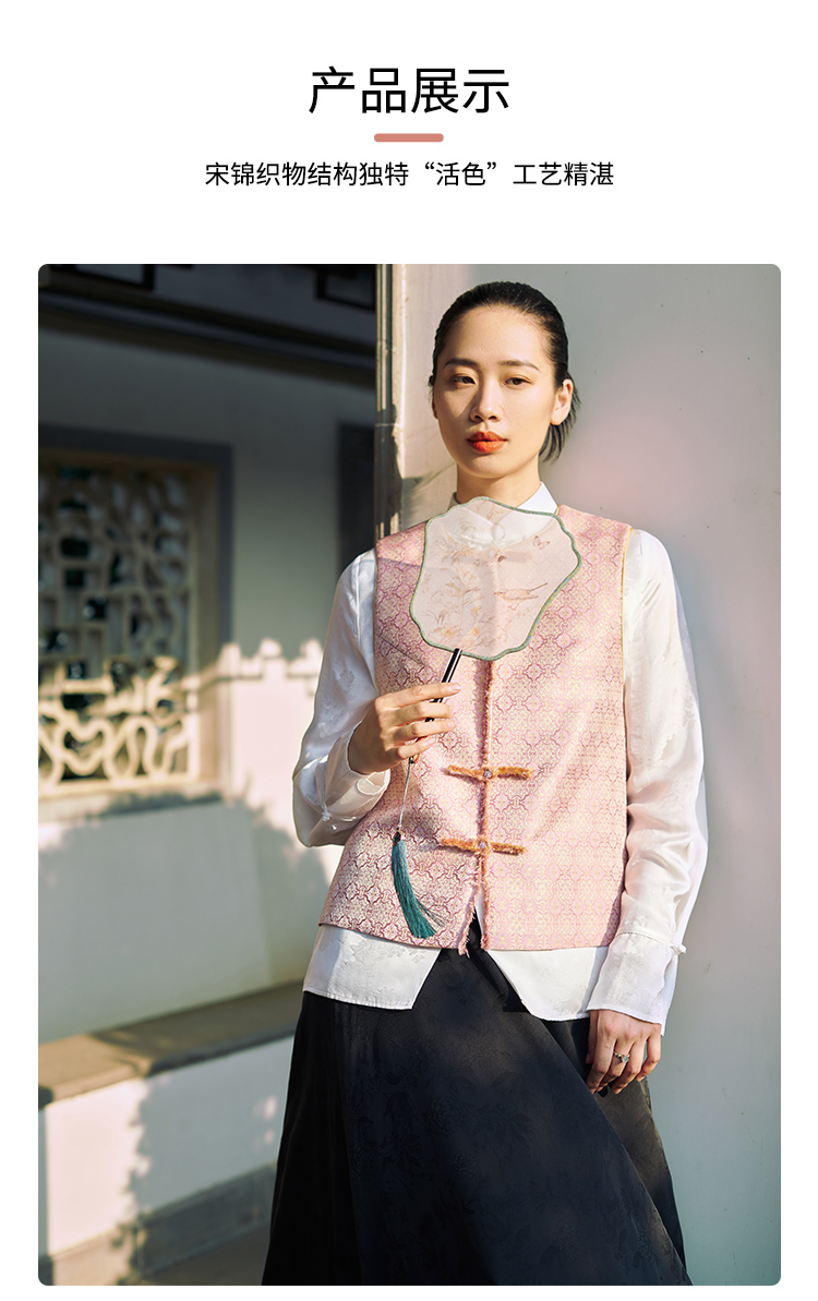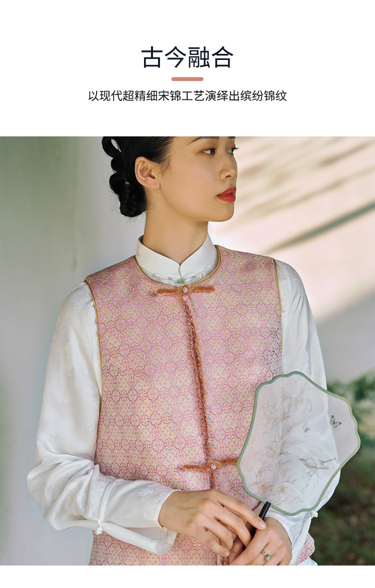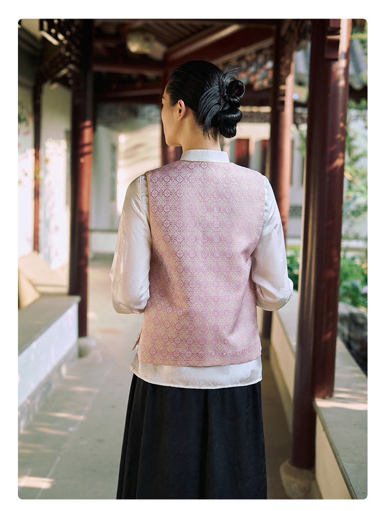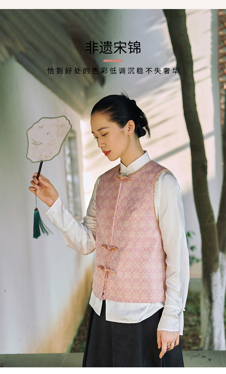 SAINTJOY/上久楷 宋锦女士马甲粉定胜 复古 马夹 中国风 DWS24030