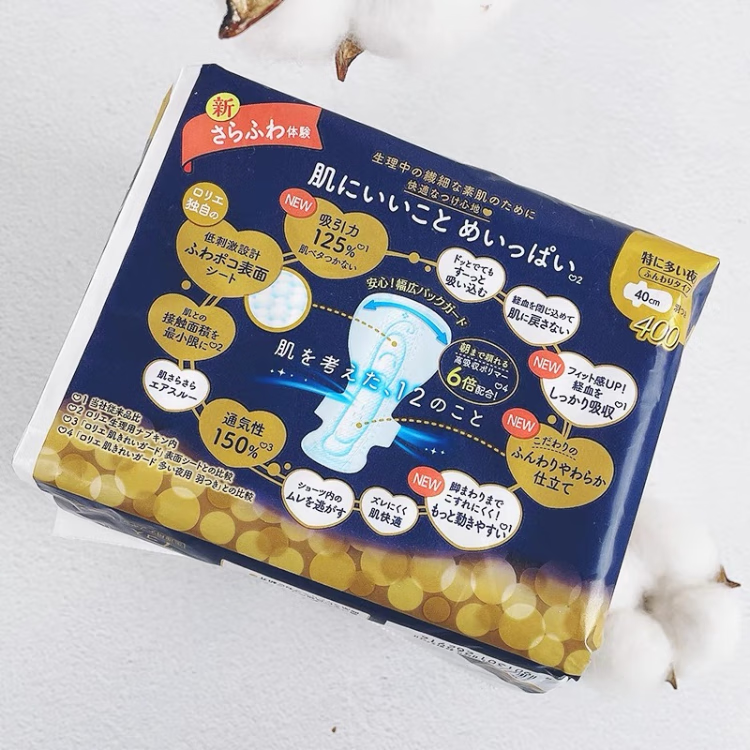 乐而雅F透气棉柔特长40cm夜用卫生巾 7片/包