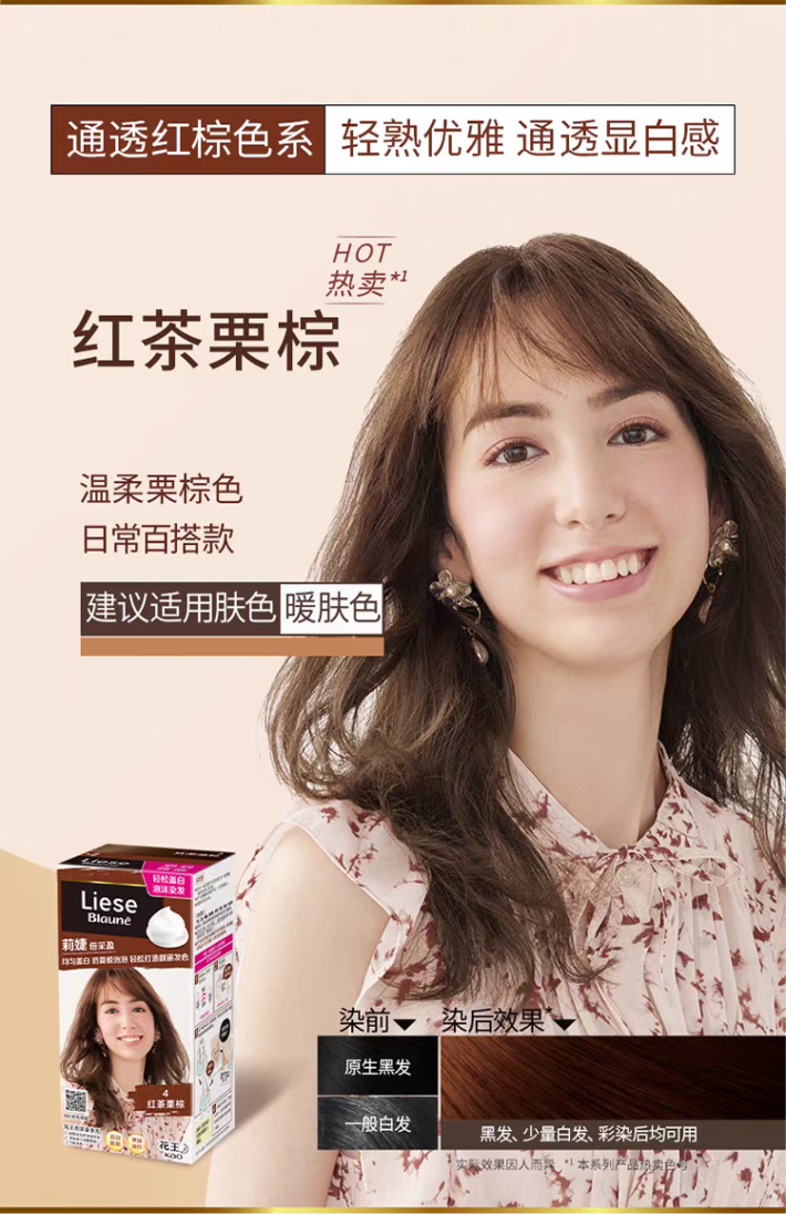 花王Liese莉婕泡泡染发剂泡沫染发膏遮白发盖白染发-摩卡暖棕 108ml