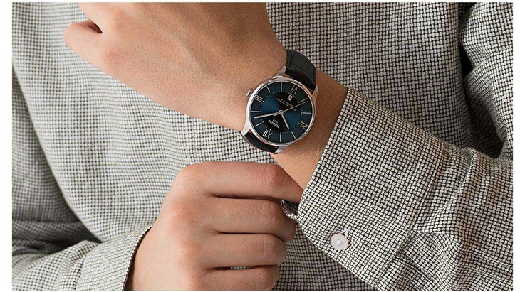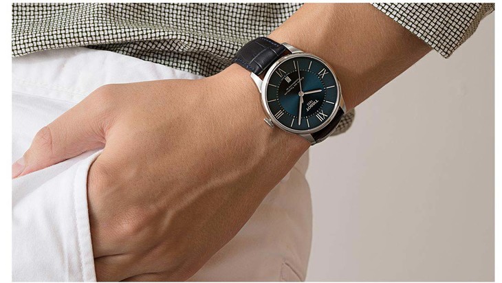 镜面 材质 | 蓝宝石水晶玻璃 | 表盘 | 精钢表壳 蓝色表盘 大三针 日期显示 罗马数字与条字刻度时标 透底 |