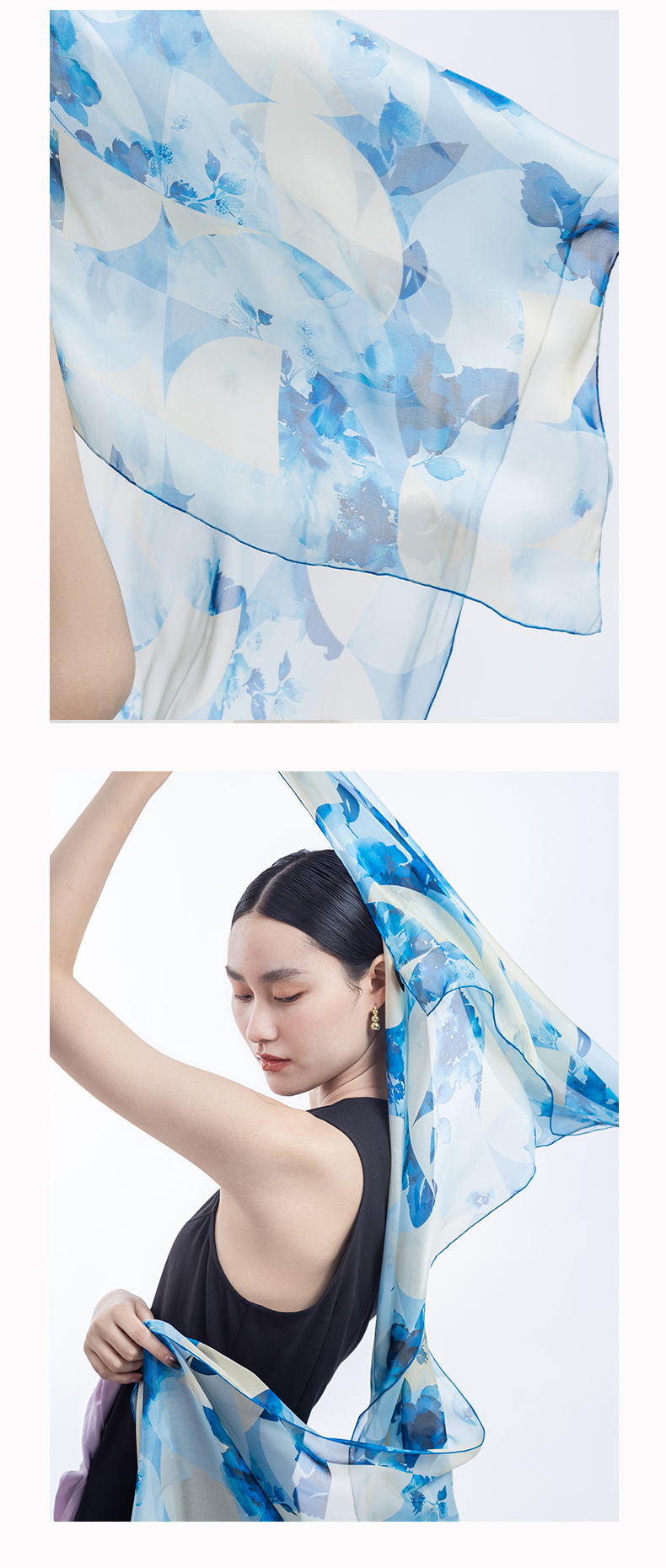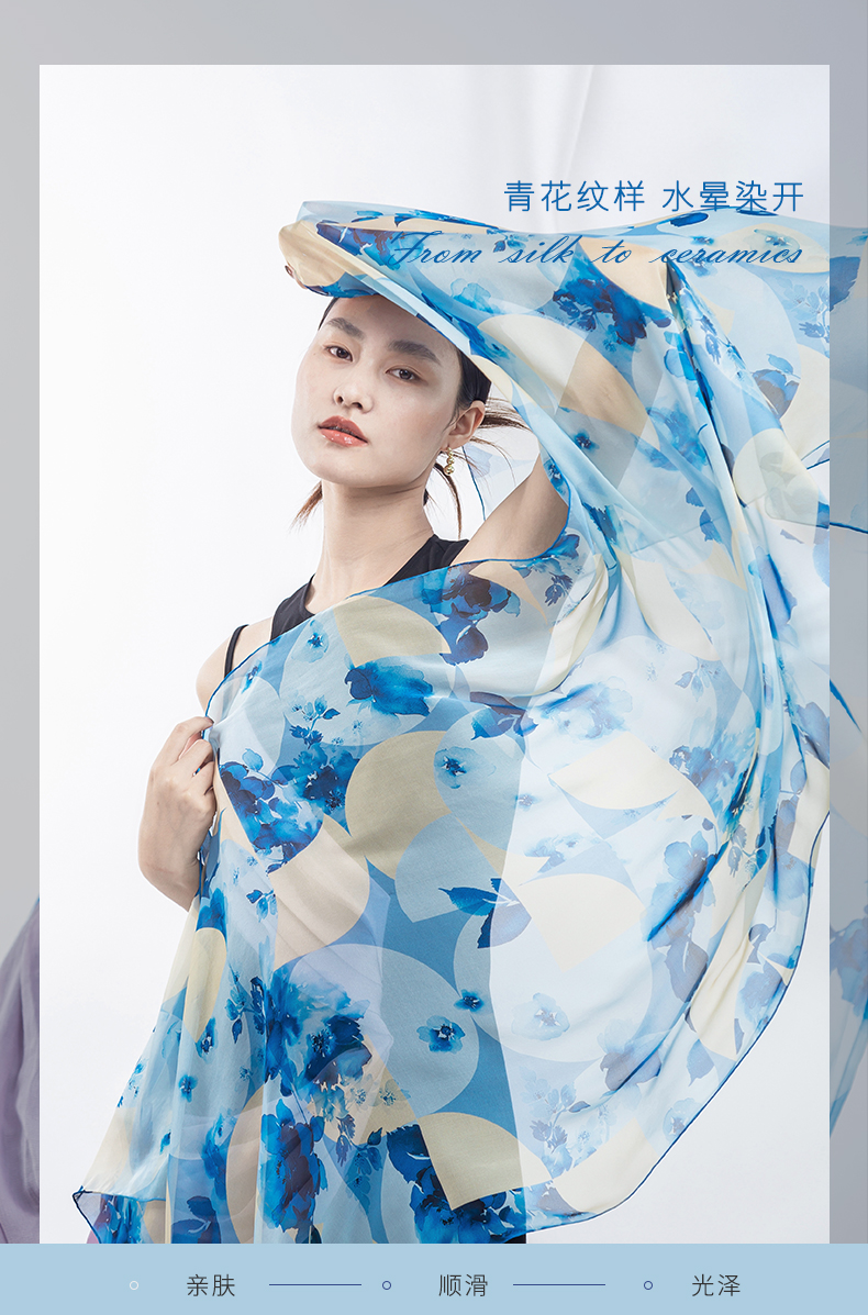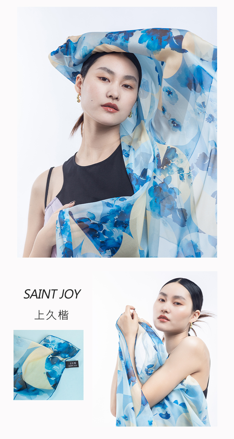 SAINTJOY/上久楷夏季真丝长巾 桑蚕丝 青花春韵CJS22007