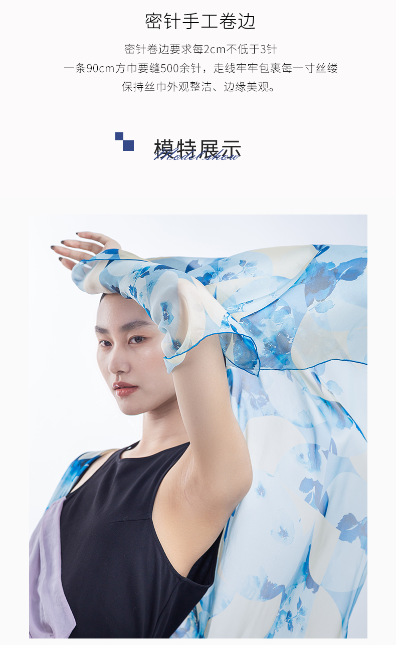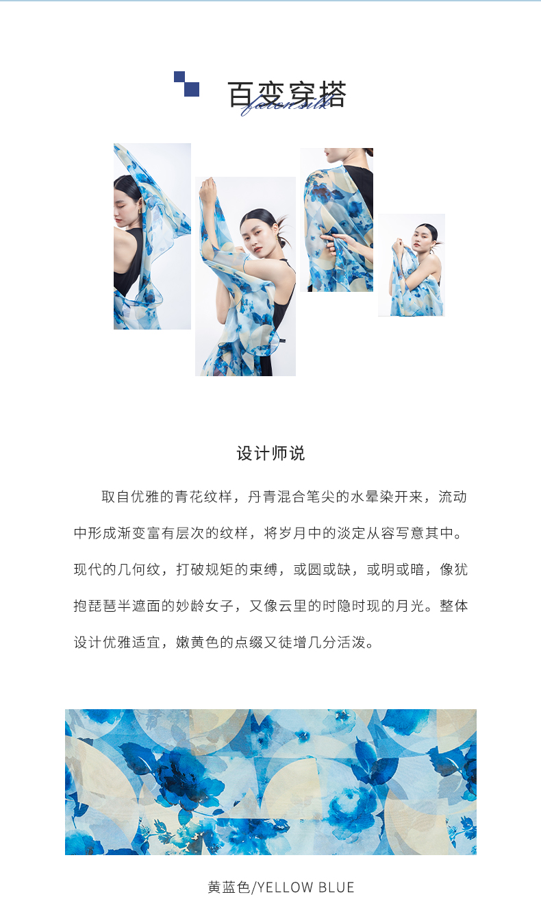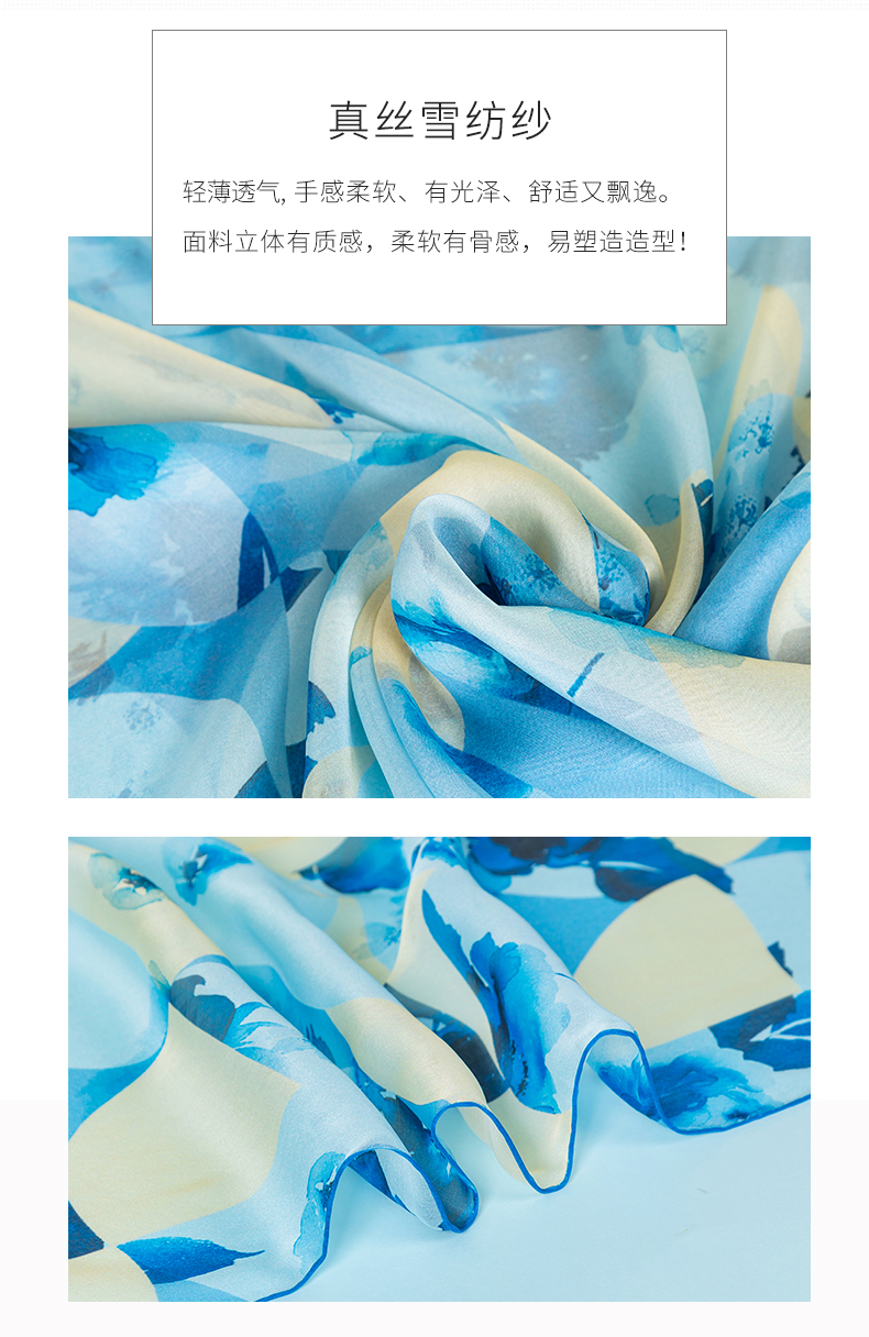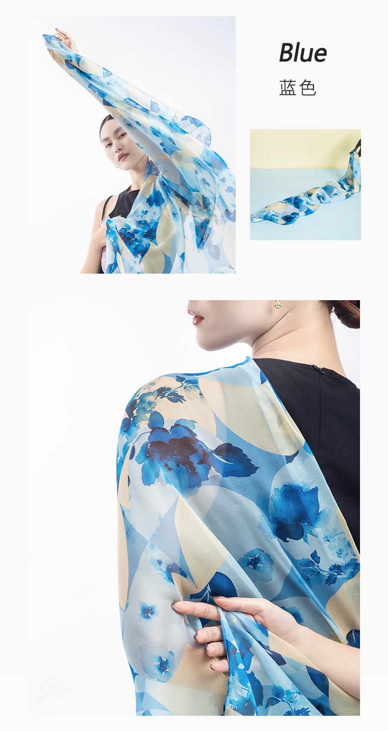 SAINTJOY/上久楷夏季真丝长巾 桑蚕丝 青花春韵CJS22007