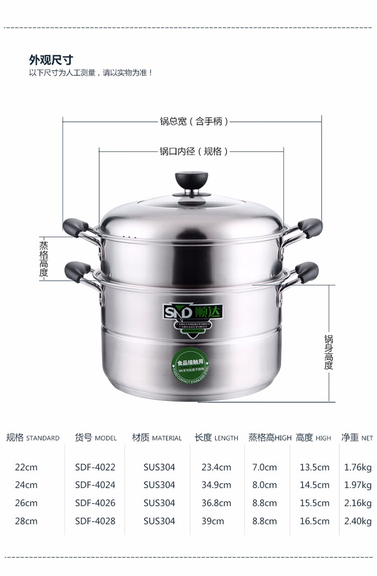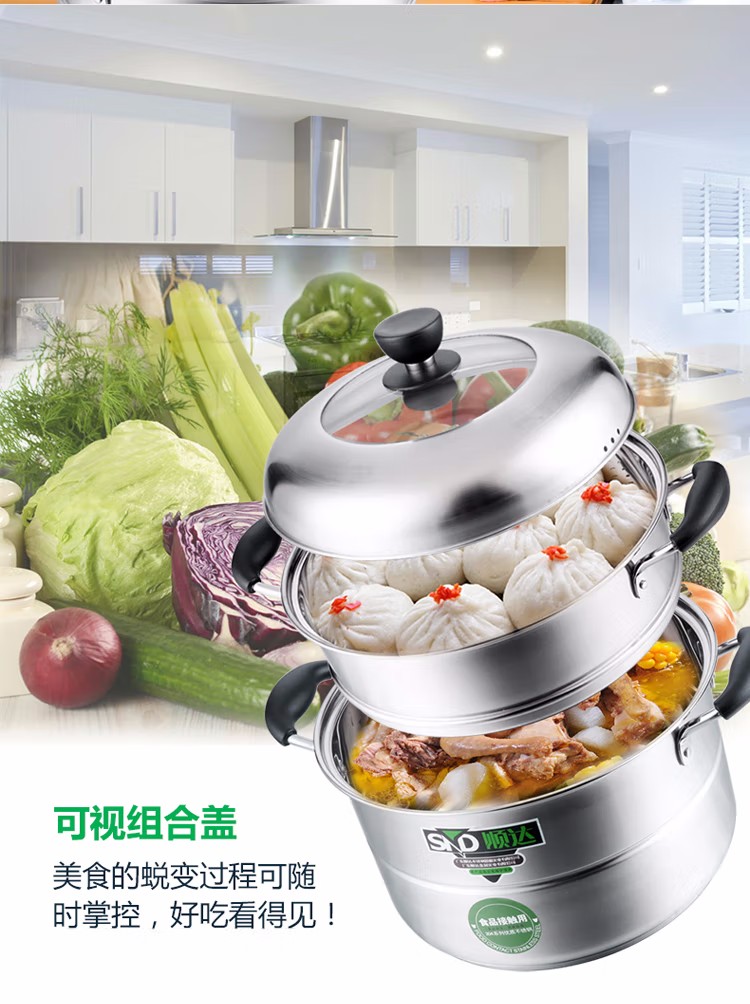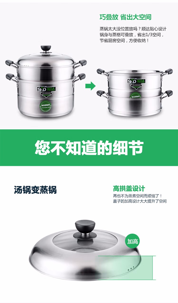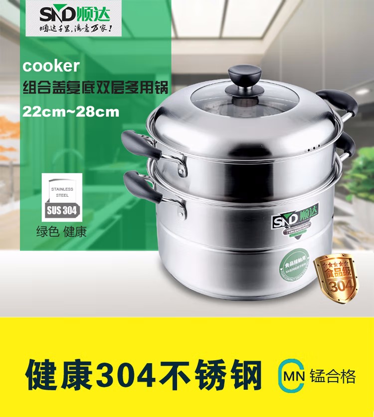 顺达(SND) 组合盖复底双层多用锅 304不锈钢蒸锅燃气灶电磁炉通用