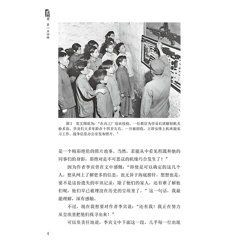 《老照片》是一种陆续出版的丛书,现每两个月推出一辑。辟有“故时风物”“名人一瞬”“旧事重温”“私人相簿”等栏目。通过刊发有意思的老照片并辅以生动活泼的文字,以独特的视角回望百多年来人类的生存与发展,是可看、可读的历史读本。本辑《老照片》中展示了一座战时兵工厂的影像故事,记录了阳夏之役中的荫昌,讲述了作者与清史泰斗戴逸先生的一段交往,等等。