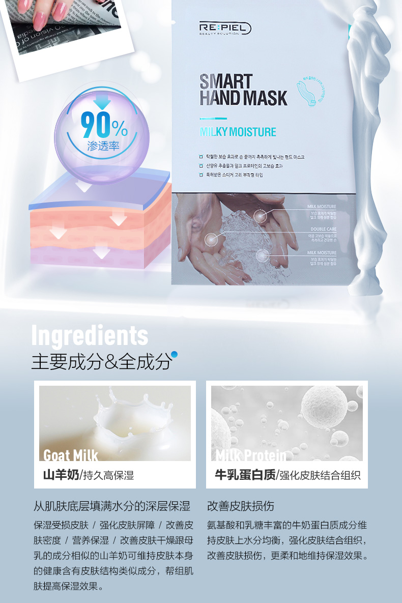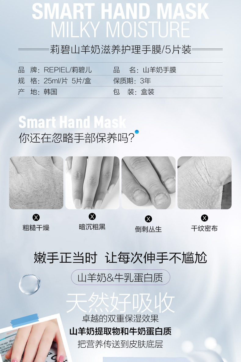 dx 韩国 莉碧儿山羊奶滋养护理手膜滋润嫩白干燥细纹补水保湿 14ml*5片