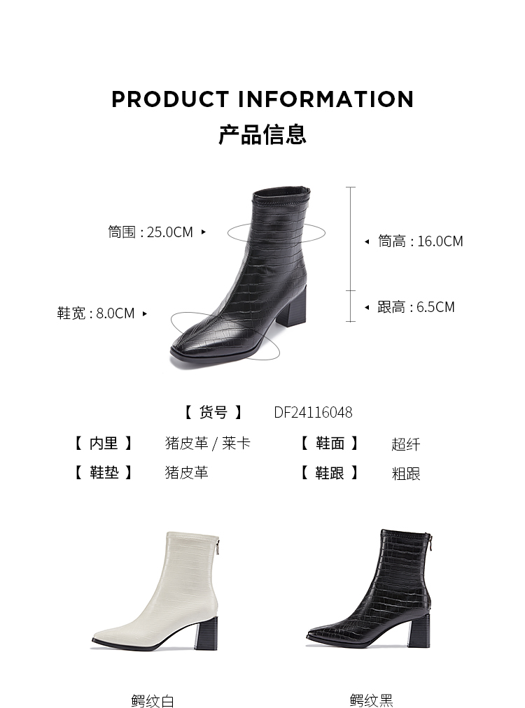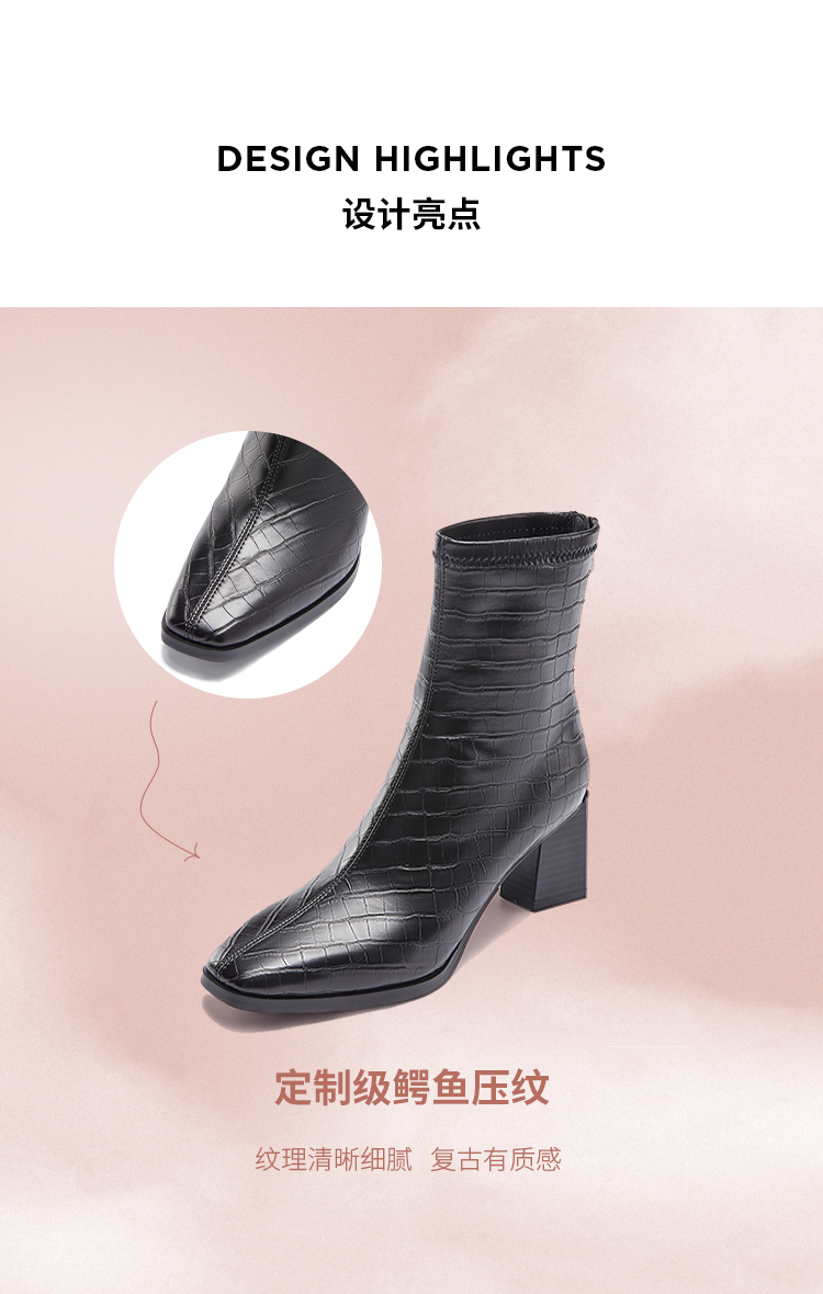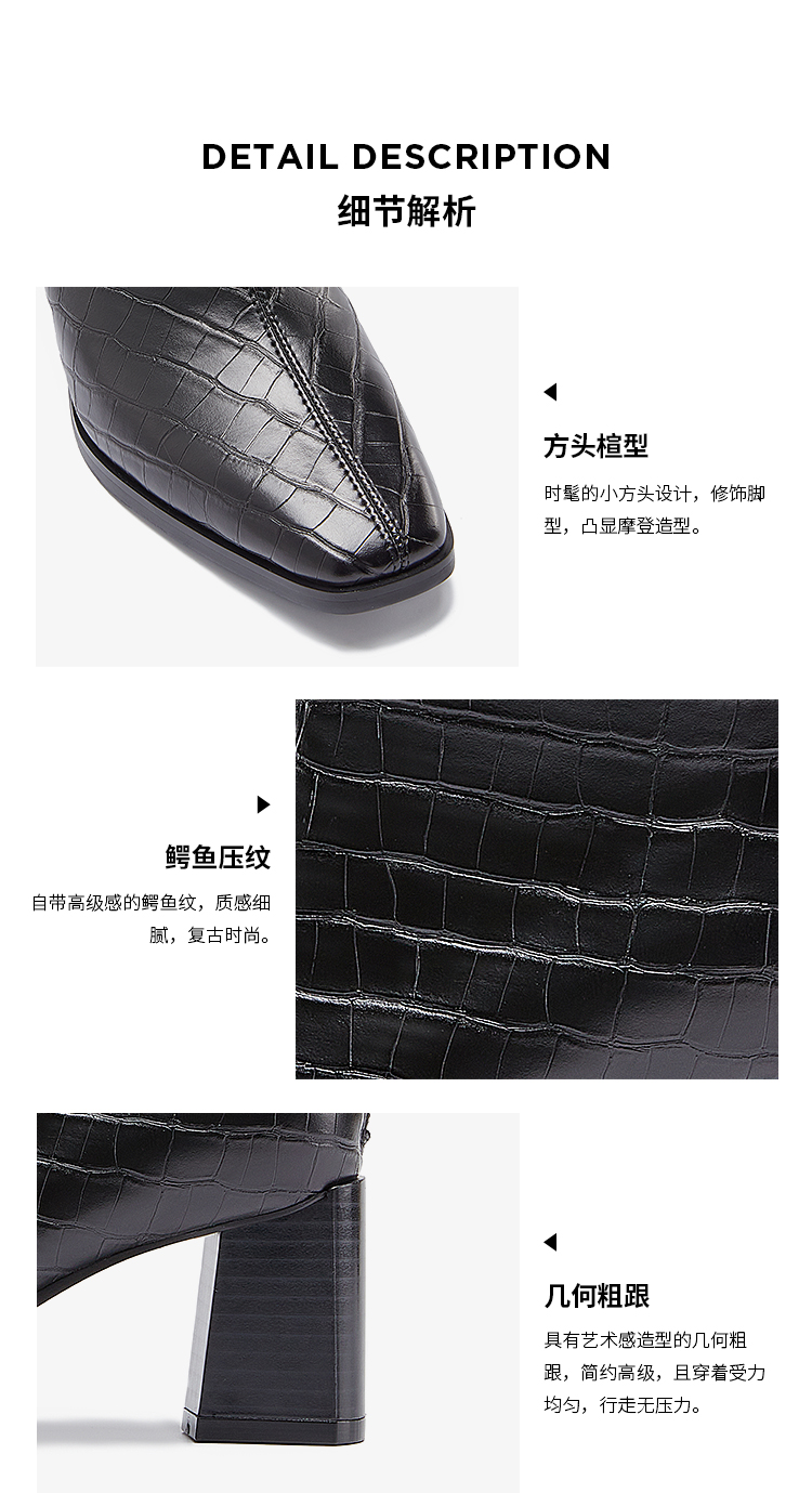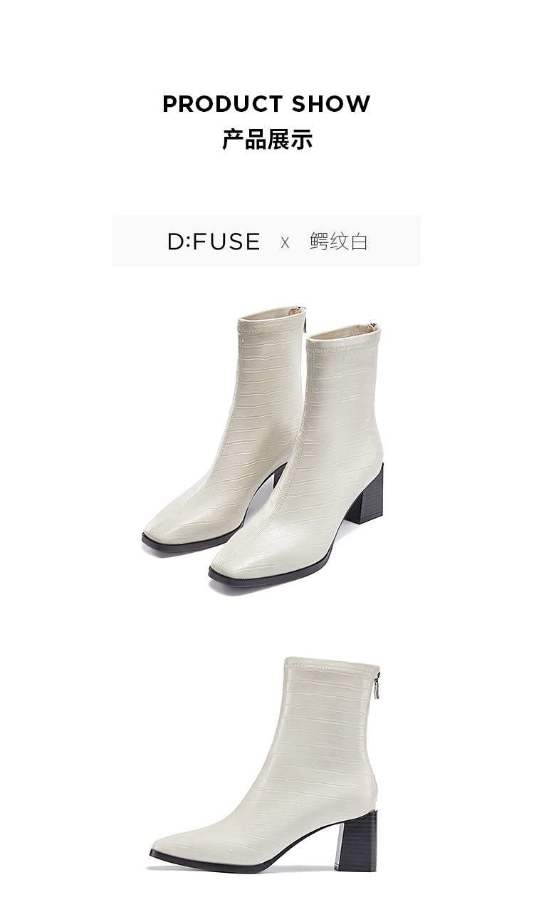 DFuse迪芙斯冬款方头鳄鱼纹粗跟短靴女DF34116048