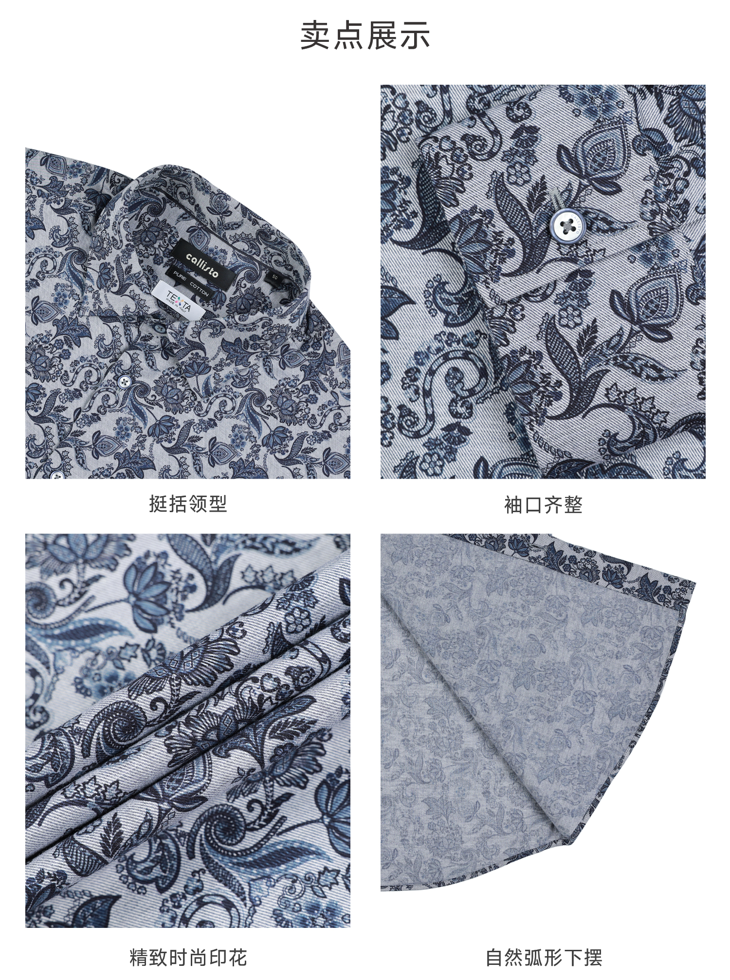callisto星空蓝意大利进口印花休闲衬衫