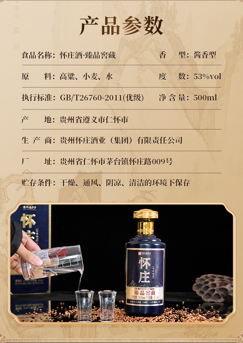 怀庄酒·臻品窖藏 53度酱香型白酒 500ml*6瓶/箱