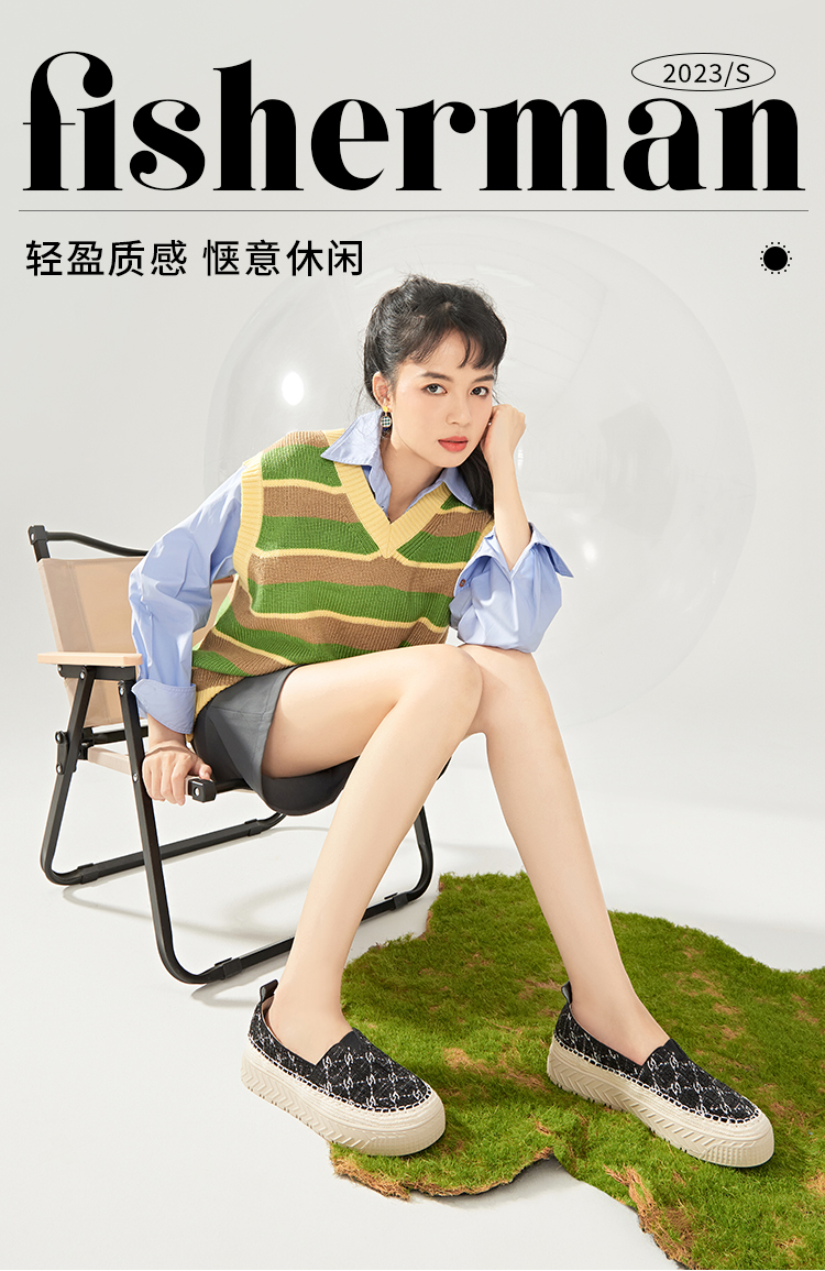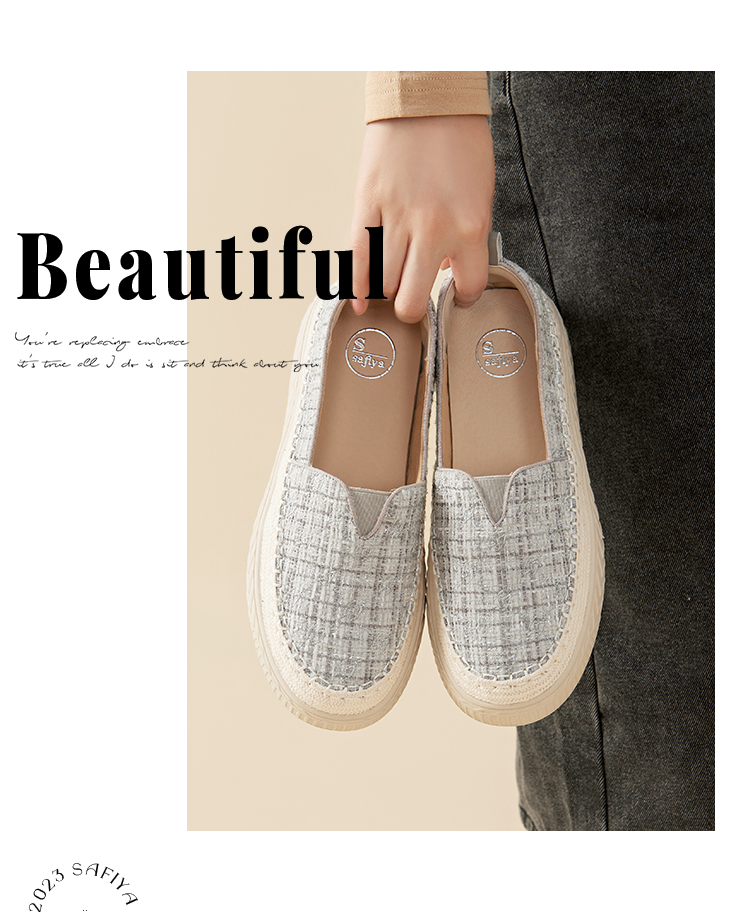 Safiya/索菲娅2023秋季新品潮流厚底透气休闲一脚蹬松糕渔夫鞋 SF33112455