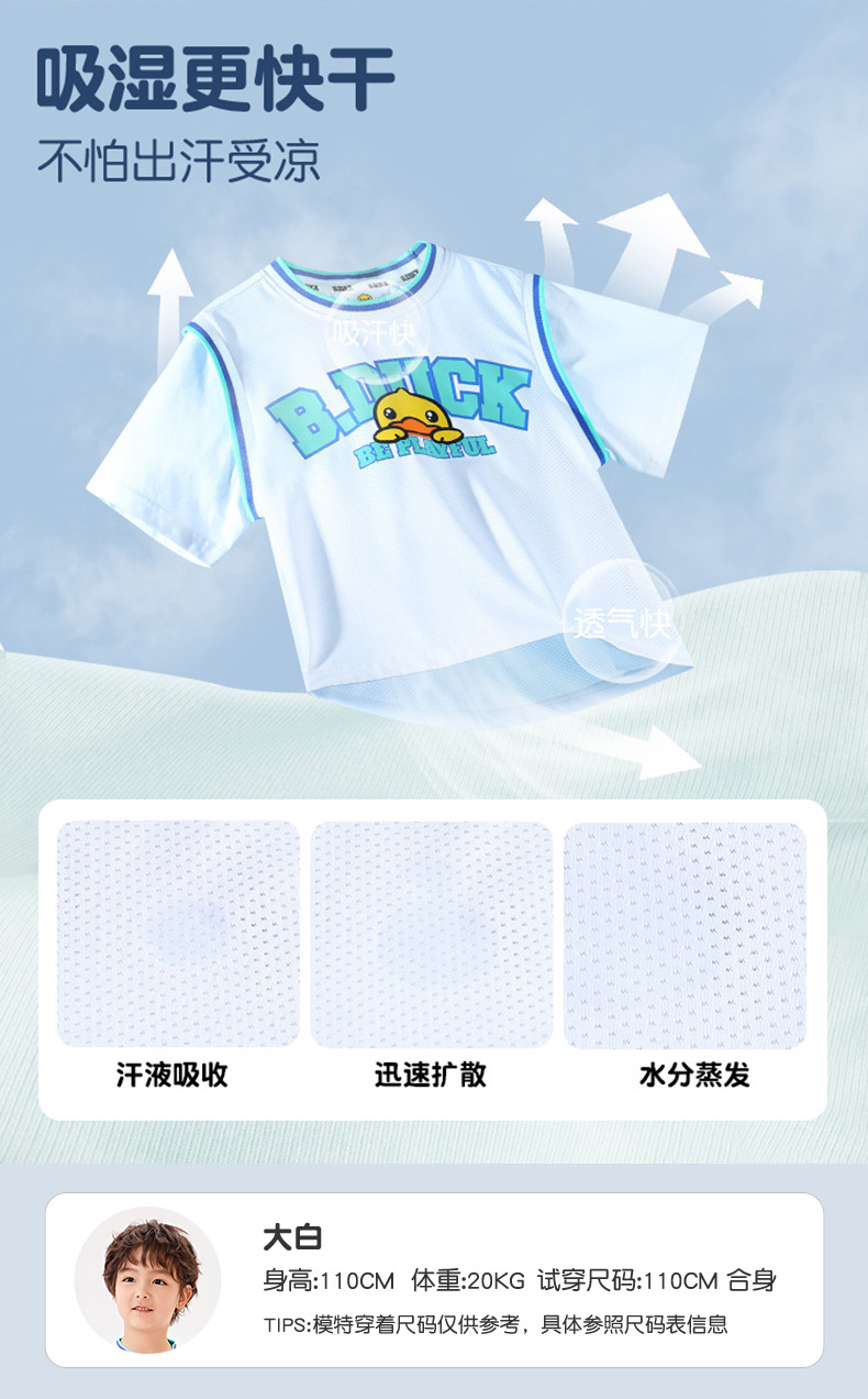 [冰感]bduck小黄鸭童装女童T恤儿童短袖夏装宝宝凉感上衣90-150 FF2701070