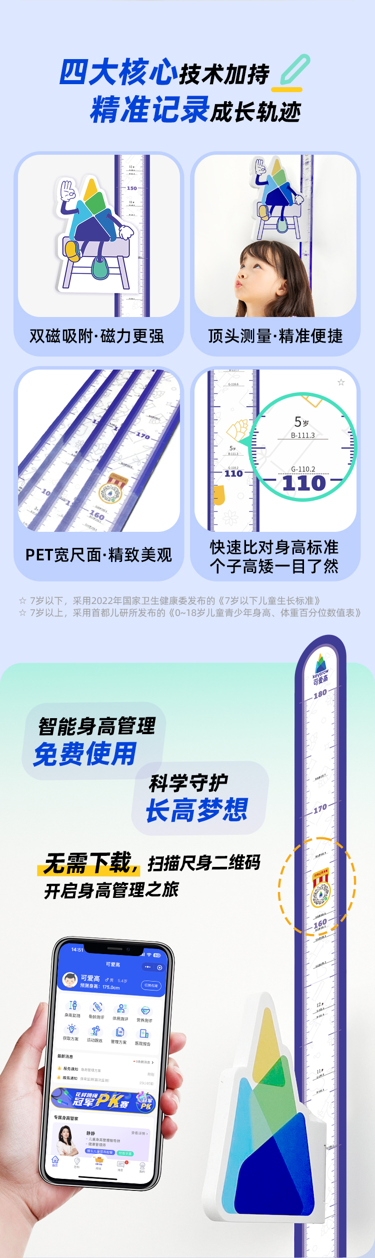 可爱高定制智能身高测量仪 || 3秒测量,蓝牙上传,即测即读,身高分析 || 连接手机记身高·自动生成评估报告||使用方法见商品详情