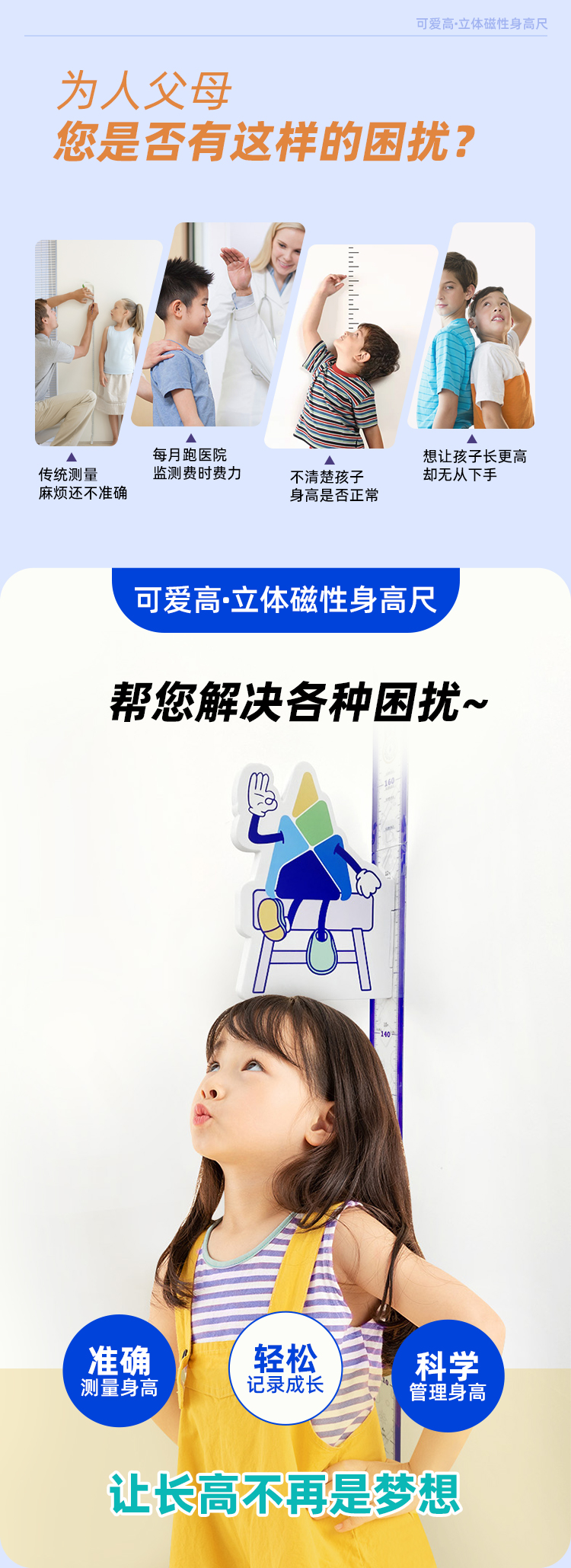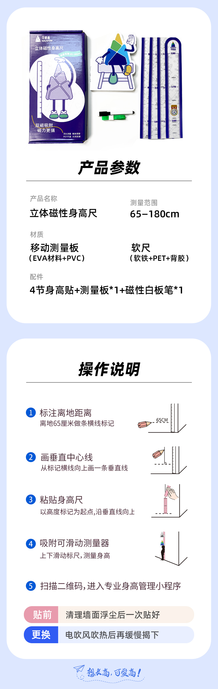 可爱高定制磁吸身高尺,儿童标准卡通身高尺立体身高尺