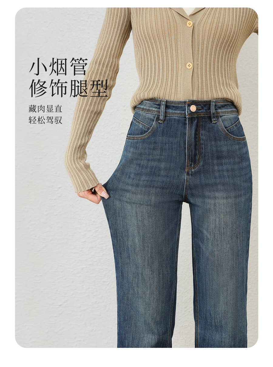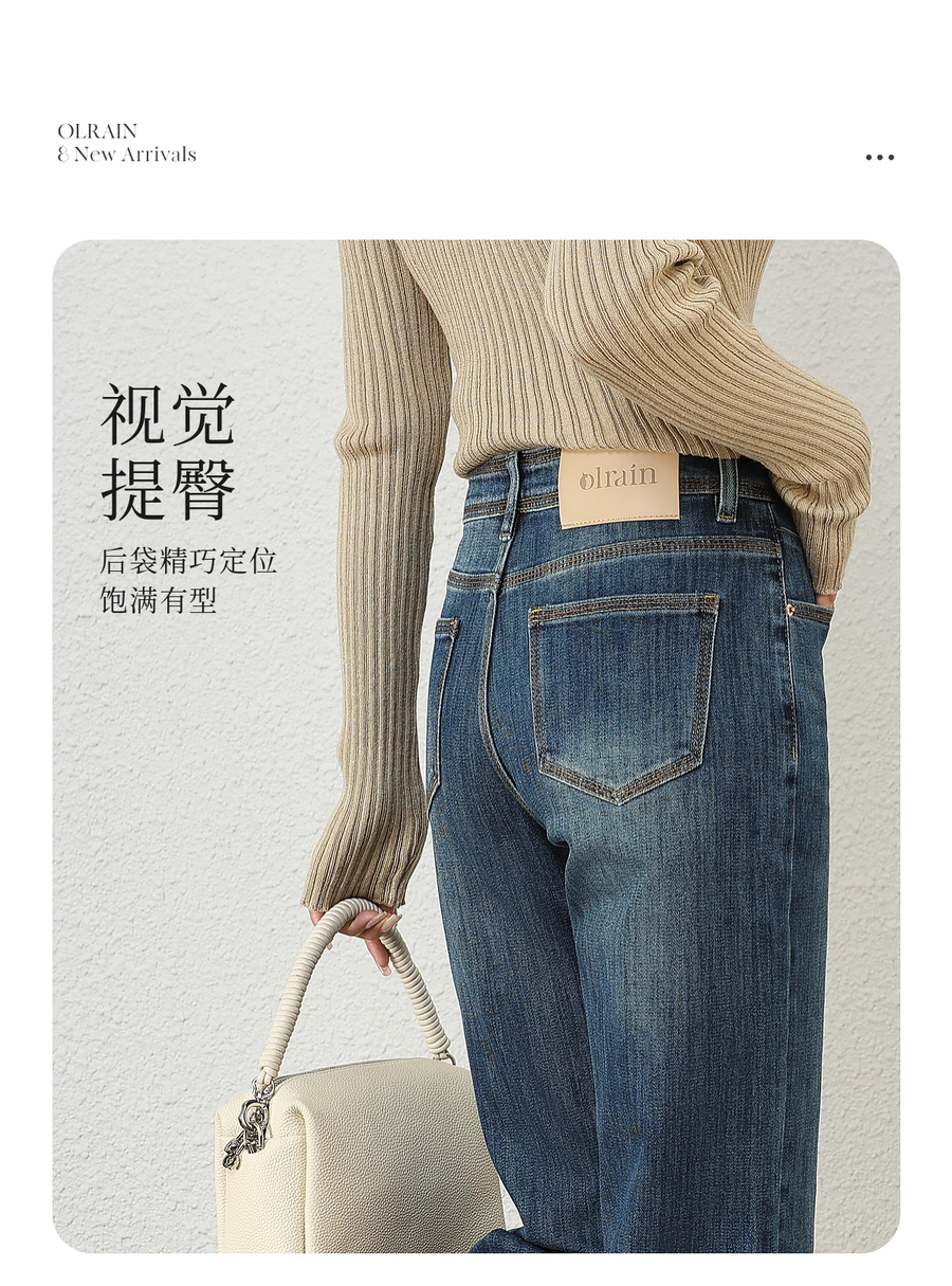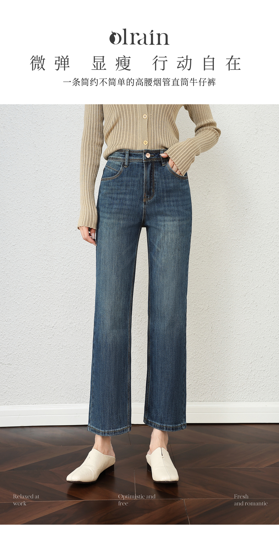 OLrain欧芮儿2025新款女秋季高腰显瘦小直筒裤百搭烟管裤牛仔长裤