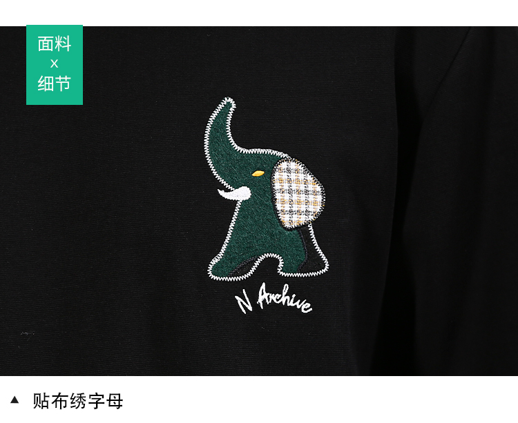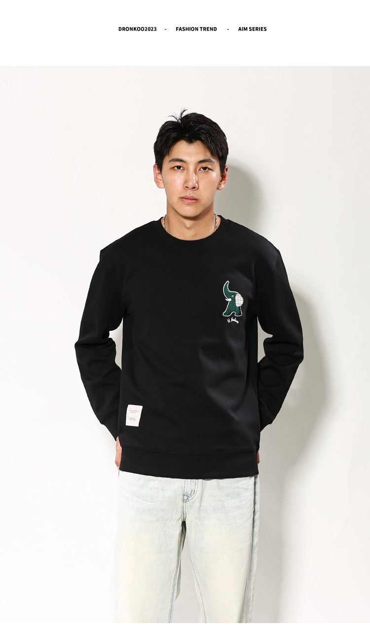 DRONKOO 2024 圆领左胸毛毡绣大象中厚卫衣