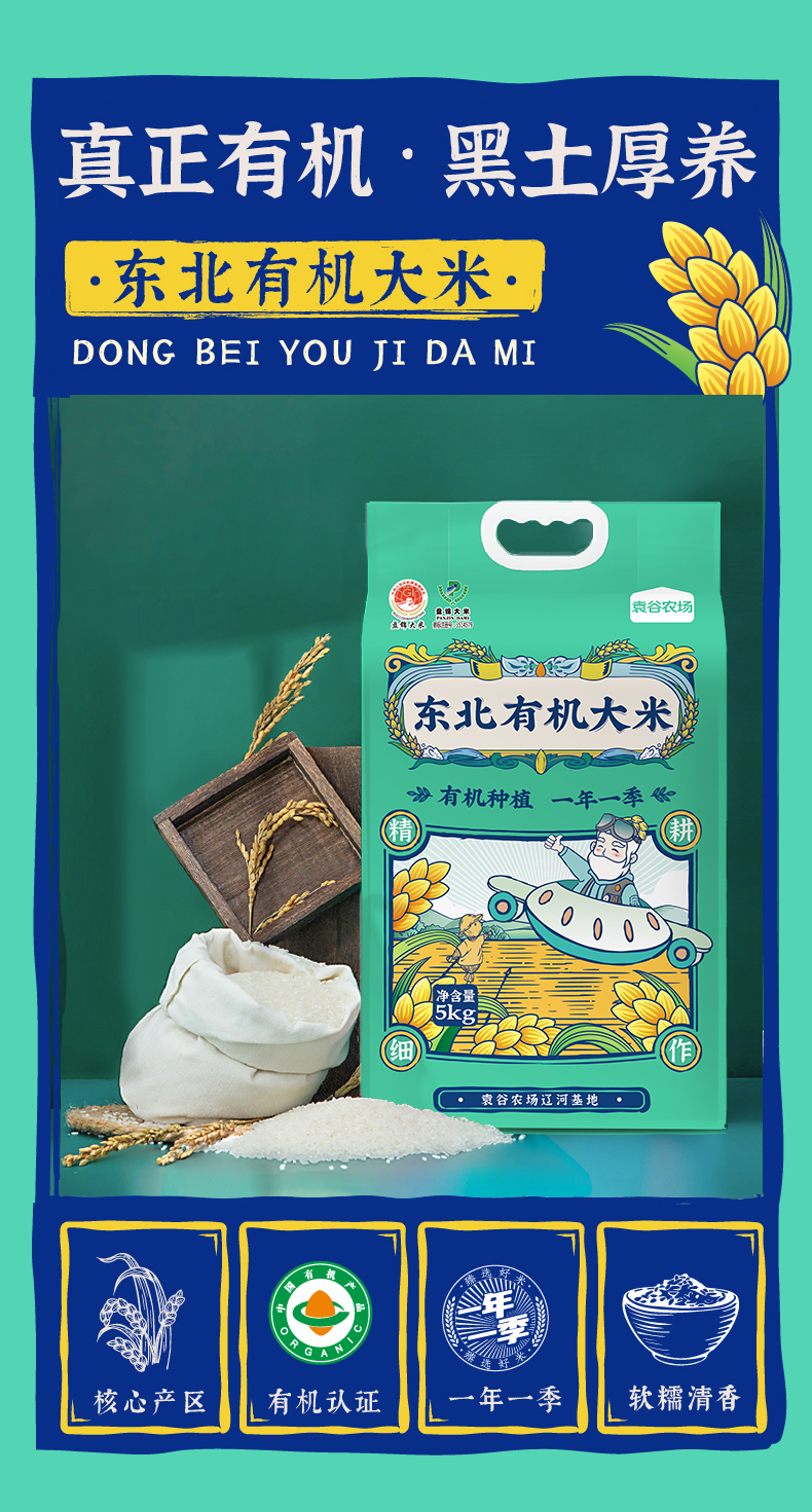 袁谷东北有机大米5kg当季新米一年一季圆粒粳米有机认证10斤装