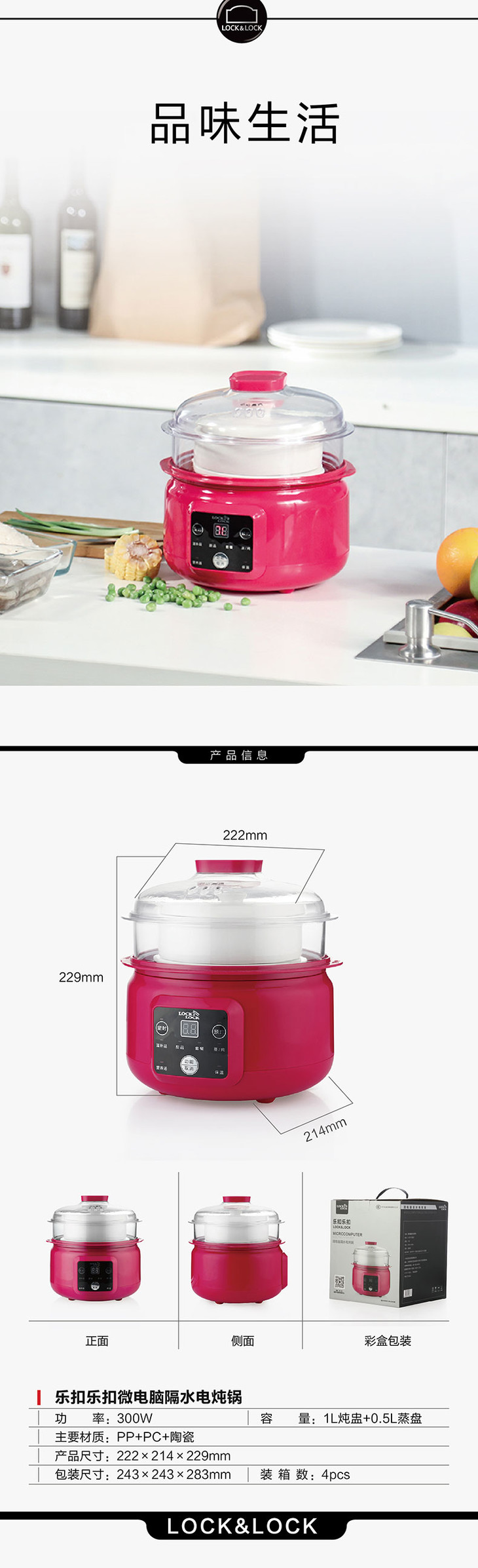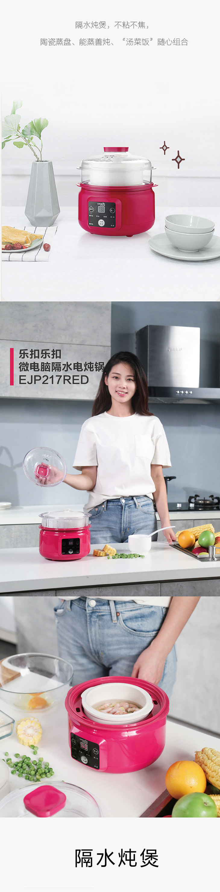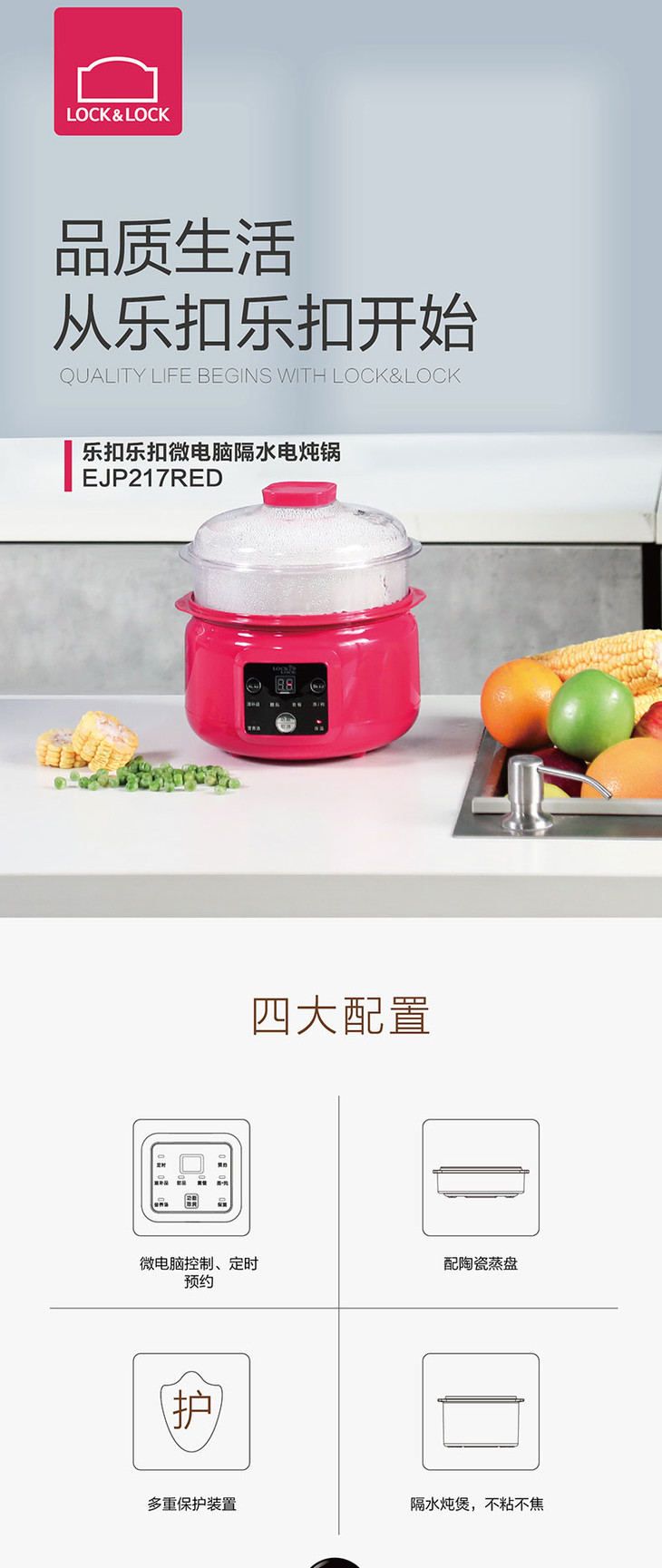 乐扣乐扣 LOCK&LOCK 微电脑隔水炖锅 定时预约 隔水炖锅 EJP217RED 水晶红