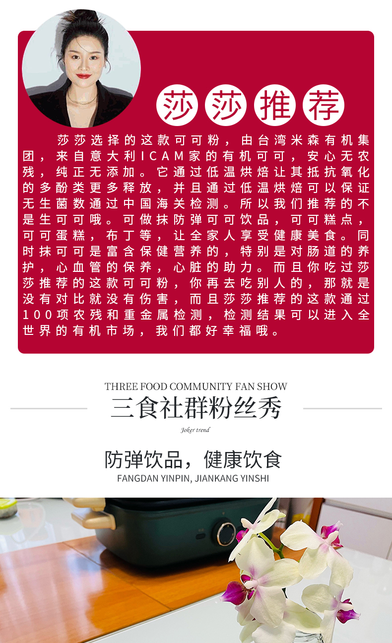 世界选物官黑可可粉 饮料奶茶烘焙伴侣意大利icam原料米森250g/罐